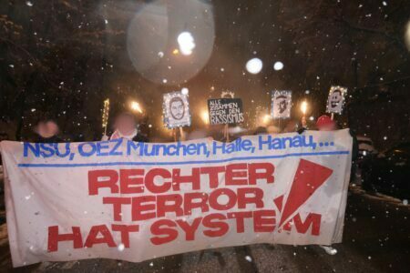 Demo & Kundgebung in Gedenken an die Ermordeten des rechten Terroranschlags in Hanau BerichtMünchen Antifa-Stammtisch München|23.02.26 Sechs Jahre seit dem rechten Terror in Hanau, sechs Jahre ohne Gökhan Gültekin, Sedat Gürbüz, Said Nesar Hashemi, Mercedes Kierpacz, Hamza Kenan Kurtović, Vili Viorel Păun, Fatih Saraçoğlu, Ferhat Unvar und Kaloyan Velkov – mehr als einen Monat ohne Ibrahim Akkuş. Trotz Schneesturm haben wir heute -am 19.02.26- in München gemeinsam mit in der Spitze 500 Menschen den Ermordeten vom 19. Februar 2020 gedacht, unsere Wut rausgelassen und uns gegenseitig unsere Solidarität und Kollektivität gezeigt. Diese Kollektivität zeigt sich auch in den Organisationen und ihren Redebeiträgen, die an der Demonstration teilnahmen. Die DGB Jugend und der AK Ver.di gegen Rechts verdeutlichten in ihren Rede dass die Spaltung unserer Klasse nicht […]