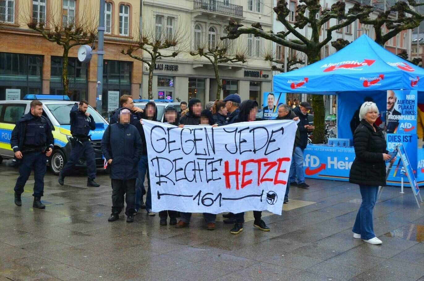 Uniformierter Wachschutz für Nazi-Partei BerichtHeidelberg AIHD|22.02.26 Gestern, am 21. Februar 2026, gab es mehrere Aktionen gegen den Desinformationsstand der AfD auf dem Heidelberger Bismarckplatz. Mehrere kleinere Gruppen versuchten, den Landtagswahlkampf der rechtsradikalen Partei zu stören und abzuschirmen, weil es keine Normalität werden darf, dass auf unseren Plätzen wieder Nazi-Propaganda verbreitet wird. Dass die AfD das gestern weitgehend machen konnte, verdankt sie ihrem uniformierten Wachschutz von der Polizei. Gegen 13:30 Uhr baute die AfD am Samstag ihren Desinformationsstand auf – begleitet von drei Mannschaftswägen der Polizei, aus denen bei jedem Widerspruch gegen die Nazi-Propaganda sofort eine Handvoll Uniformierte sprangen, die diejenigen drangsalierten, die die fortschreitende Faschisierung in der BRD nicht unwidersprochen hinnehmen. Mehrere kleinere Gruppen wurden am […]