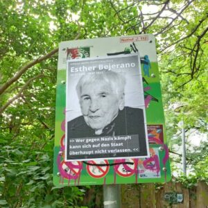 Heute vor einem Jahr verstarb Esther Bejarano (geb. 15.12.1924) als eine der letzten Zeitzeug*innen des Holocausts und Überlebende des Vernichtungslagers Auschwitz in ihrer Wahlheimat Hamburg.