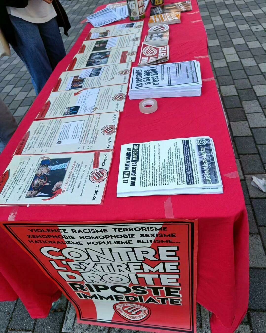 Überall wurden wir herzlich empfangen und ermutigt von den Straßburger.innen, die den Rassismus der die Gesellschaft, die Schulen und das Fernsehen verseucht nicht mehr ertragen können. Zugleich wird die Sozialdemagogie des Rassemblement Nationale2extrem rechte französische Partei immer mehr demaskiert: Trotz ihrer Propaganda über die Erhöhung der Kaufkraft, stimmen die Abgeordneten Hand in Hand mit den Macronisten für jede Maßnahme des Sozialabbaus.