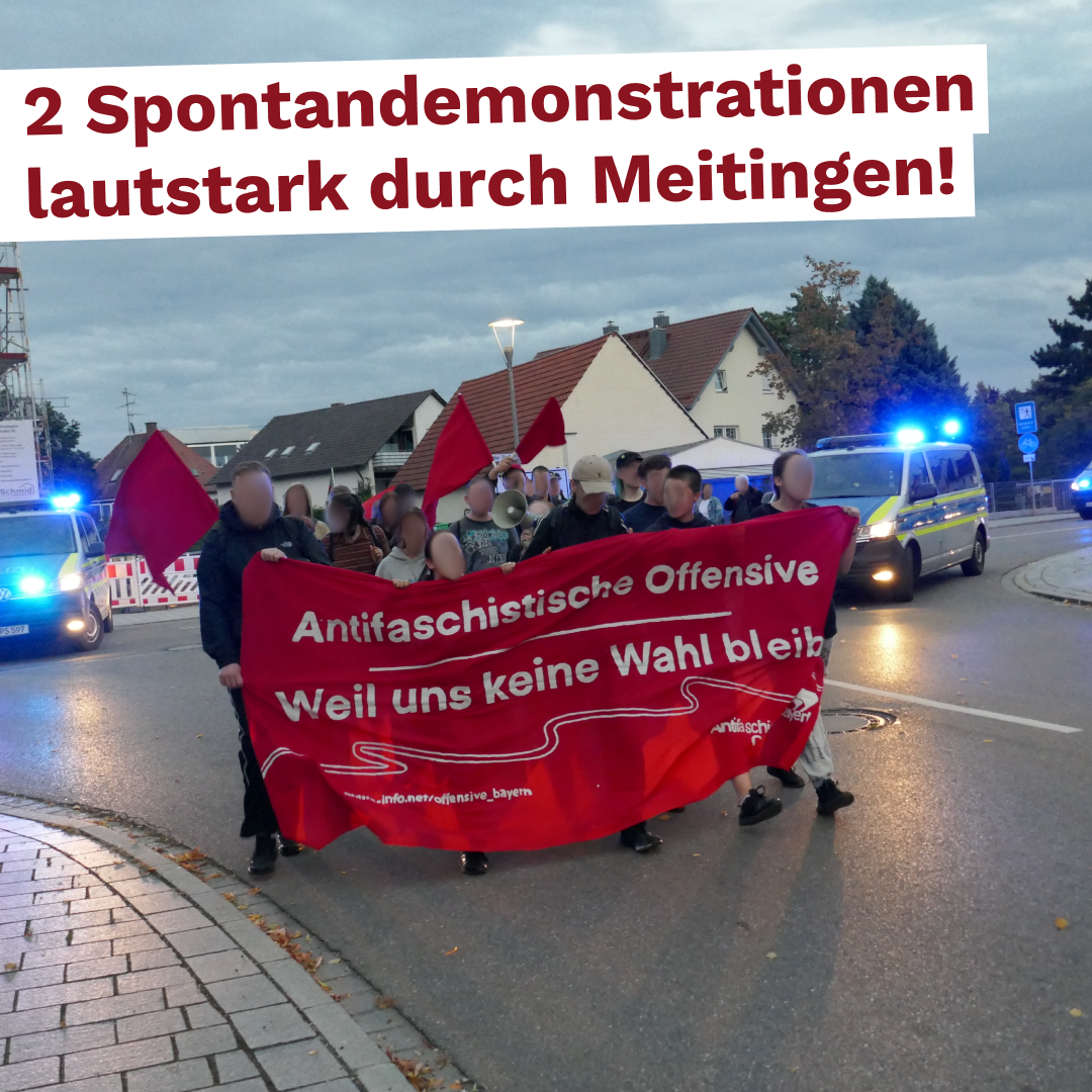 So begannen wir selbstbestimmt mit unserem Protest bereits am Bahnhof und gingen als Spontandemonstration bis zur Gemeindehalle in Meitingen.