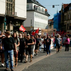 Wichtig ist jedoch gerade bei der Arbeit mit und in Massenprotesten die inhaltliche Klarheit. Trotz der aktuell relativen Schwäche der linken und antifaschistischen Bewegung, sollten wir nicht nur in der Masse „baden“, darin inhaltlich aufgehen oder lediglich die Empörungswelle reiten, um sich zu profilieren. Es braucht einen differenzierten Blick, eine Analyse warum sich wer gerade wie verhält und stets den Versuch, in dieser Bewegung linke Ansätze greifbar zu machen und auch die unbequemen Wahrheiten anzusprechen.