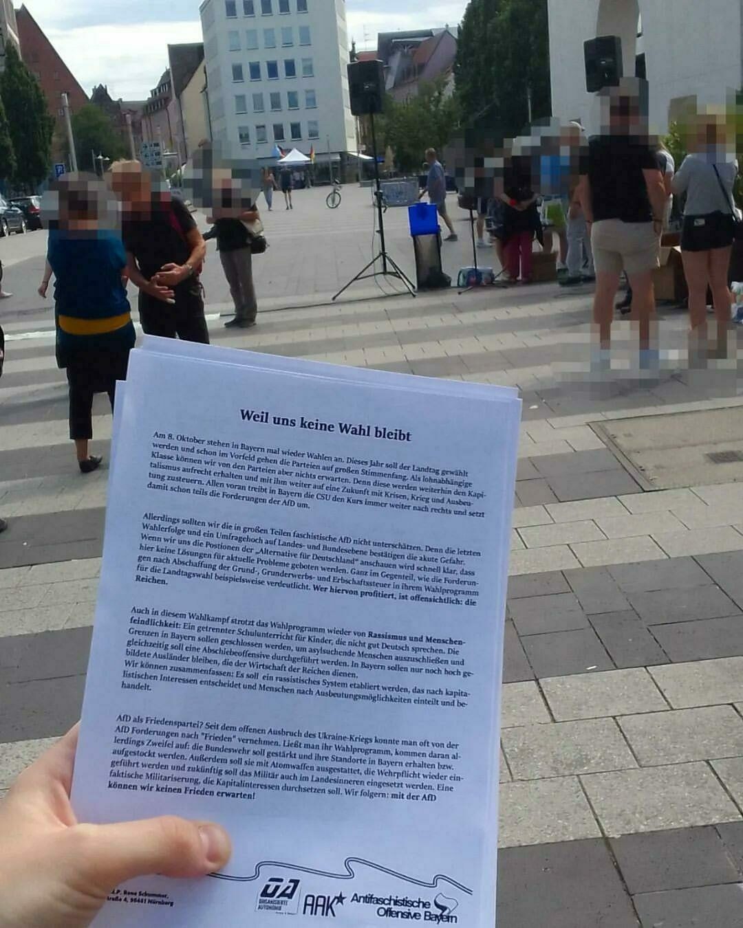 Ein Angebot kann auch schon ein Flugblatt sein, das nicht nur zur tieferen Auseinandersetzung mit der aktuellen gesellschaftlichen und politischen Lage führt, sondern letztlich auch Hilfestellung in Diskussionen im Alltag bieten kann.