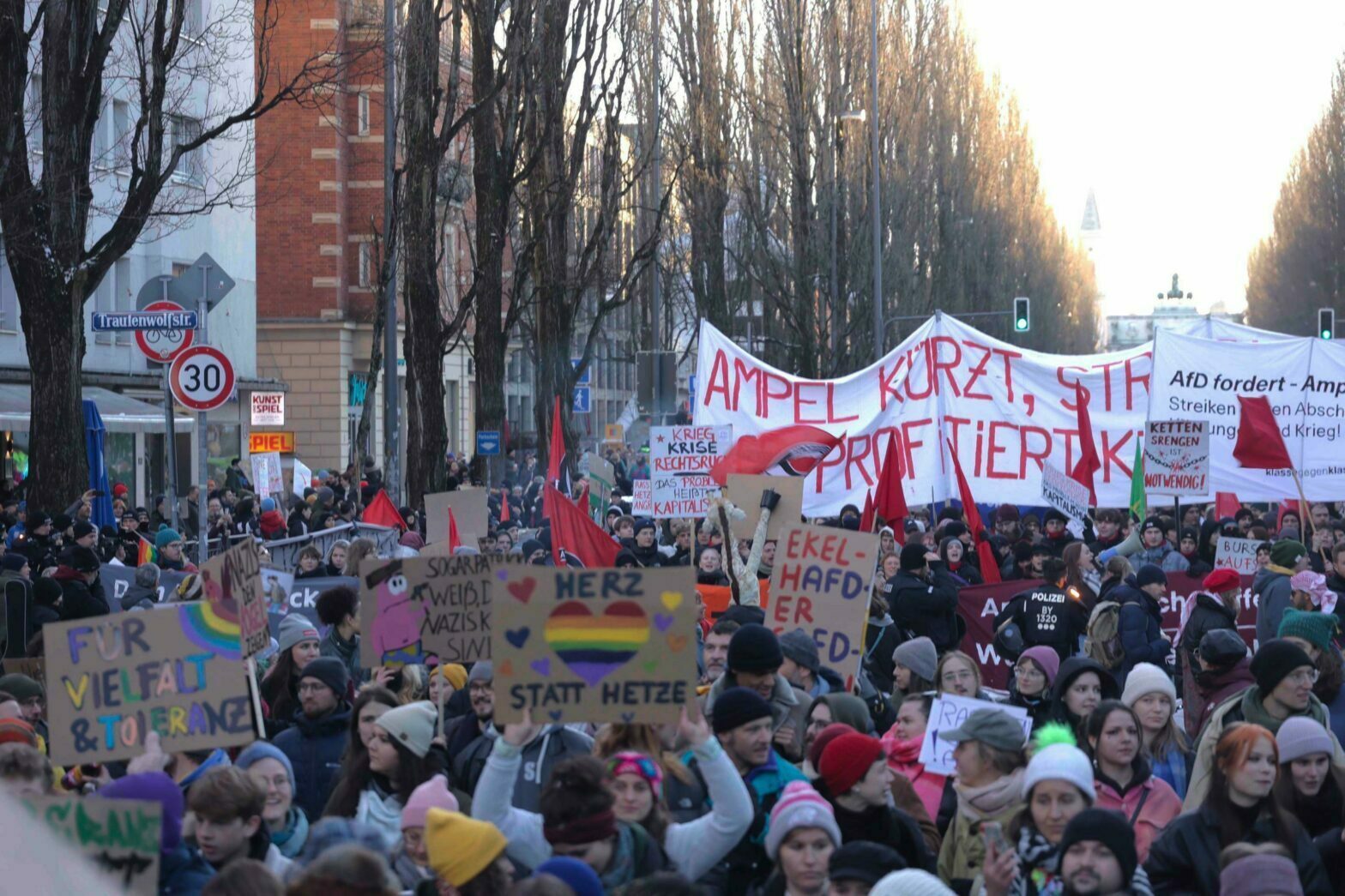 Wahrnehmbar ist außerdem eine Politisierung, die die „normale“ erhöhte Aufmerksamkeit in einem Wahlkampf übersteigt – ging es vor 10 Jahren noch darum, dass sich politisch Aktive zur bzw. gegen die AfD positionierten und das lediglich in anpolitisierten Kreisen und politischen Zusammenschlüssen selbst, debattieren unorganisierte Menschen nun über das Für und Wider eines AfD-Verbots, Parteiprogramme werden gelesen und allerlei kreative Aktionen finden statt. Auch abseits des üblichen zivilgesellschaftlichen Spektrums bilden sich Anti-Rechts-Zusammenschlüsse, sei es aus moralischer Überzeugung oder potentieller (indirekter) Betroffenheit von „Remigrationsplänen“.