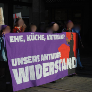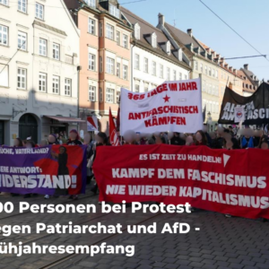Am 08.03, dem Frauenkampftag schlossen wir uns dem Kämperischen Protest des Offenen Frauentreffen Augsburgs an. Im Anschluss gingen wir mit c.a 400 Menschen auf die Straße um gegen das Patriarchat und den Frühjahrsempfang der AfD zu protestieren.