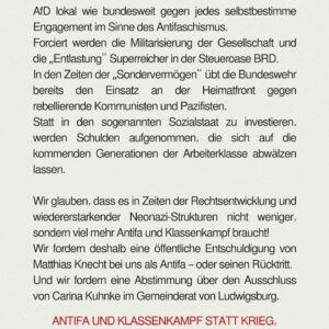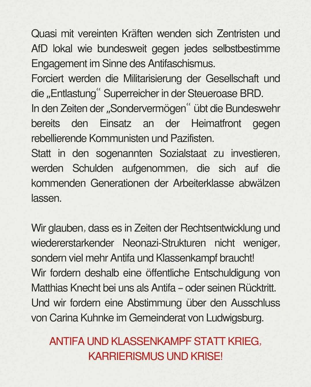 Und wir fordern eine Abstimmung über den Ausschluss von Carina Kuhnke im Gemeinderat von Ludwigsburg.