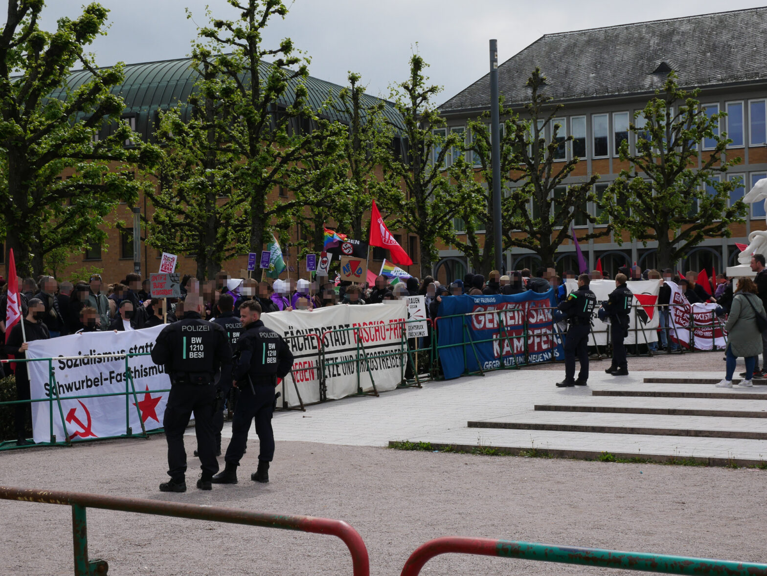 Am 26.04.2025 waren wir zusammen mit ca. 1500 Menschen in Karlsruhe gegen den rechten Aufmarsch von „Gemeinsam für Deutschland“ (GfD)auf der Straße. Organisiert und aufgerufen hatte unter anderem das Netzwerk Karlsruhe gegen Rechts, wo auch wir ein Teil davon sind.