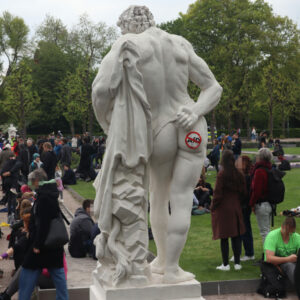 Auf Seiten der Rechten sammelten sich 200-250 Leute, welche damit gemessen an deren großspurigen Ankündigung dann doch etwas hinter den Erwartungen zurück blieben. Die Teilnehmenden ordnen wir größtenteils dem verbliebene Spektrum um „Querdenken“ und anderen Schwurblern zu, während ihre Ästhetik mit zahlreichen Deutschland-Fahnen Erinnerungen an Pegida weckte. Nur insgesamt 20-30 (vor allem junge Männer) machten den Eindruck sich eher auf die aktionsorientierte Nazi-Szene zu beziehen. Diese kamen und gingen in kleinen Cliquen, hatten keinen gemeinsamen Ausdruck und können auch nicht einer der bestehenden (neuen) Nazigruppen zugeordnet werden. Einige von Ihnen mussten zwischenzeitlich ihre Sprintfähigkeiten unter Beweis stellen, um Unbeschadet im Schutz der Polizei davon zu kommen. Gruppen wie „Unitas Germanica“ und „Deutsche Jugend voran BW“, die noch vor ein paar Wochen ihr Kommen angekündigt hatten, sind augenscheinlich nicht erschienen.