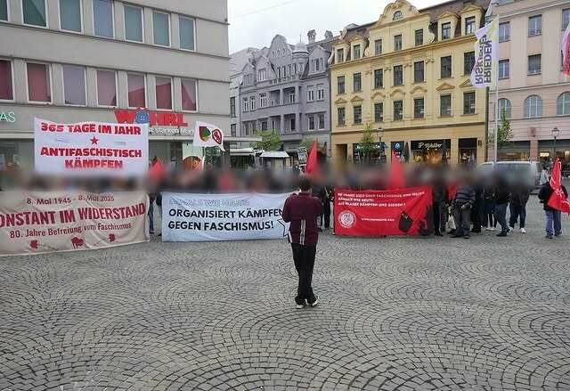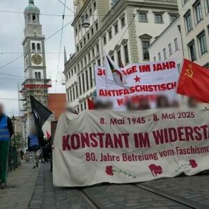 Gedenken und sich mit der eigenen Geschichte zu beschäftigen ist wichtiger Teil antifaschistischer Arbeit und Praxis. Dass vielerorts nicht nur – wie an diesem 80. Jubiläum Politiker:innen und Gremien an die Orte der Erinnerung gingen – sondern wie jedes Jahr am Tag der Befreiung von Faschismus und Krieg auch organisierte Antifaschist:innen das Andenken würdig begingen finden wir wichtig und möchten daher einige Impressionen mit euch teilen: