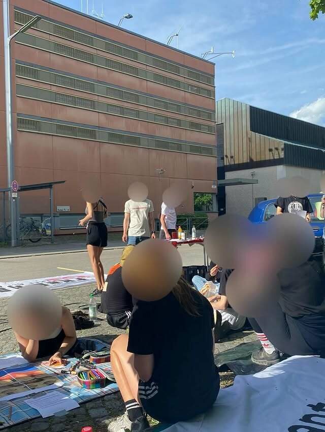 Wir nutzten das gute Wetter, um vor dem Knast zusammenzukommen, Hanna unsere Solidarität über die Knastmauern hinweg zu schicken und gemeinsam Zeit zu verbringen.
