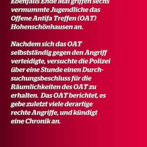 Immer wieder hört man von Angriffen auf Linke, linke Infrastruktur und Minderheiten – oft jedoch nur in Randspalten erwähnt, nur in linken Kreisen thematisiert und kaum eingeordnet.