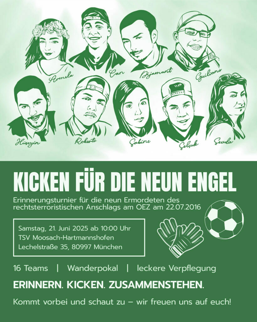begeistert vom Fußball. Can spielte sogar beim TSV Moosach-Hartmannshofen. Wir wollen mit dem Fußballturnier die neun Opfer in Erinnerung rufen.