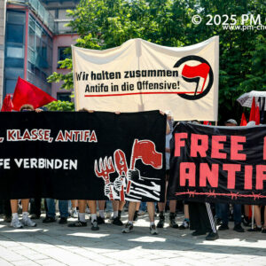 Junge und Alte sind gekommen; Punks, Anarchist*innen, Kommunist*innen, Friedens- und Klimabewegte, schwarzer Block und palästinasolidarische Menschen. »Es ist gut, dass wir hier gemeinsam sind«, sagt Katja (Name geändert), eine Demoteilnehmerin, ganz in schwarz, die Jacke voller anarchistischer Aufnäher, dem »nd«. »Wir teilen nicht überall eine Meinung, aber heute können wir solidarisch miteinander und mit den Inhaftierten sein.«