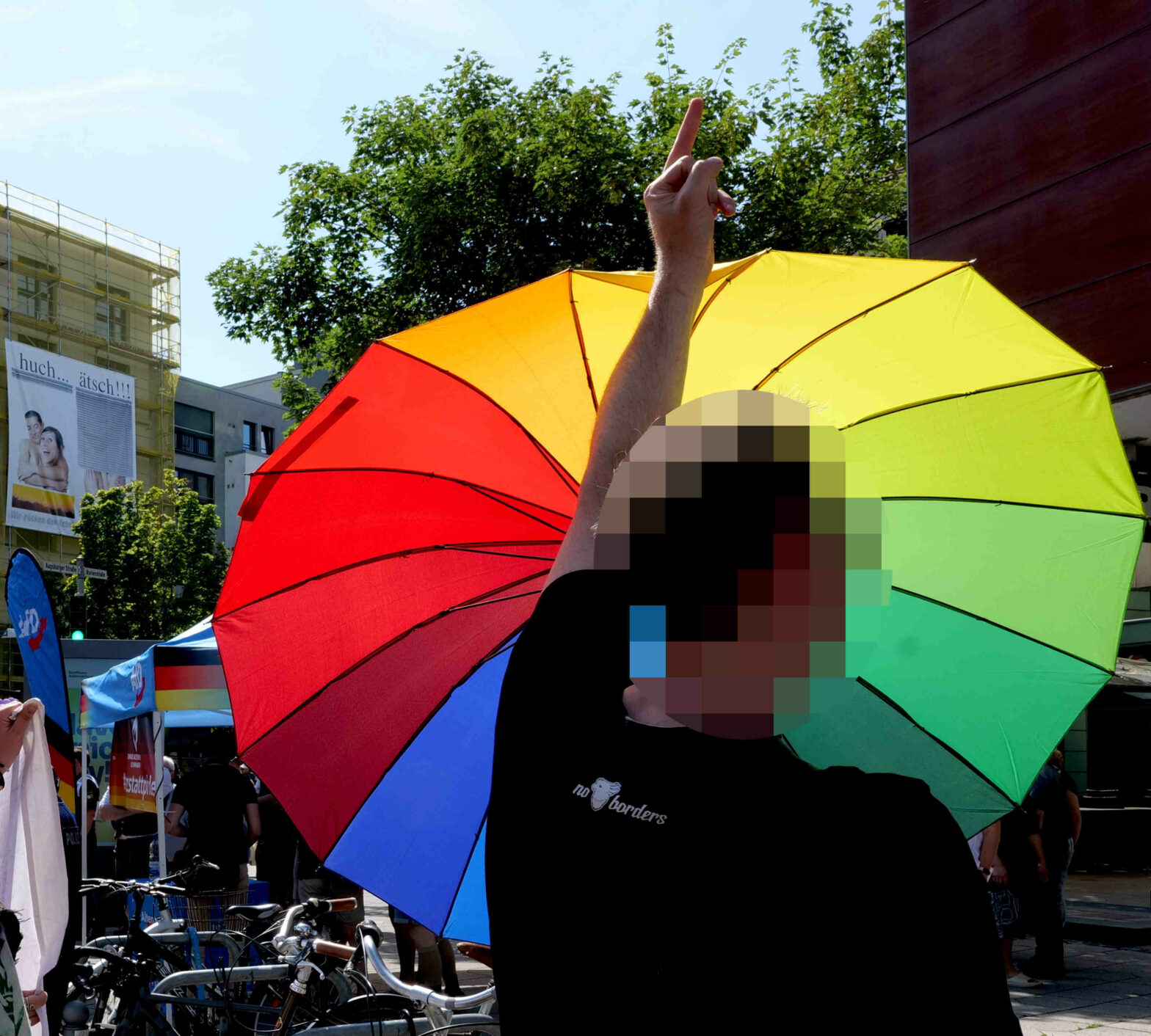Im Laufe des Tages kam es auch zu einzelnen Störungen und Störversuchen: von verbalen Ausbrüchen zu geklauten Pridefahnen und Bedrohungen.
