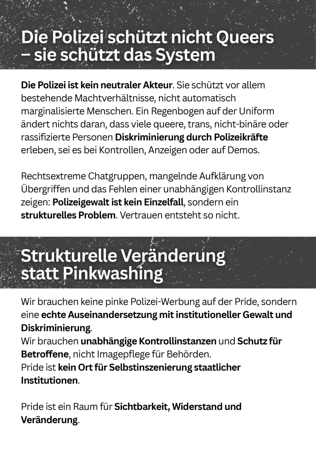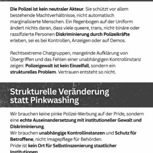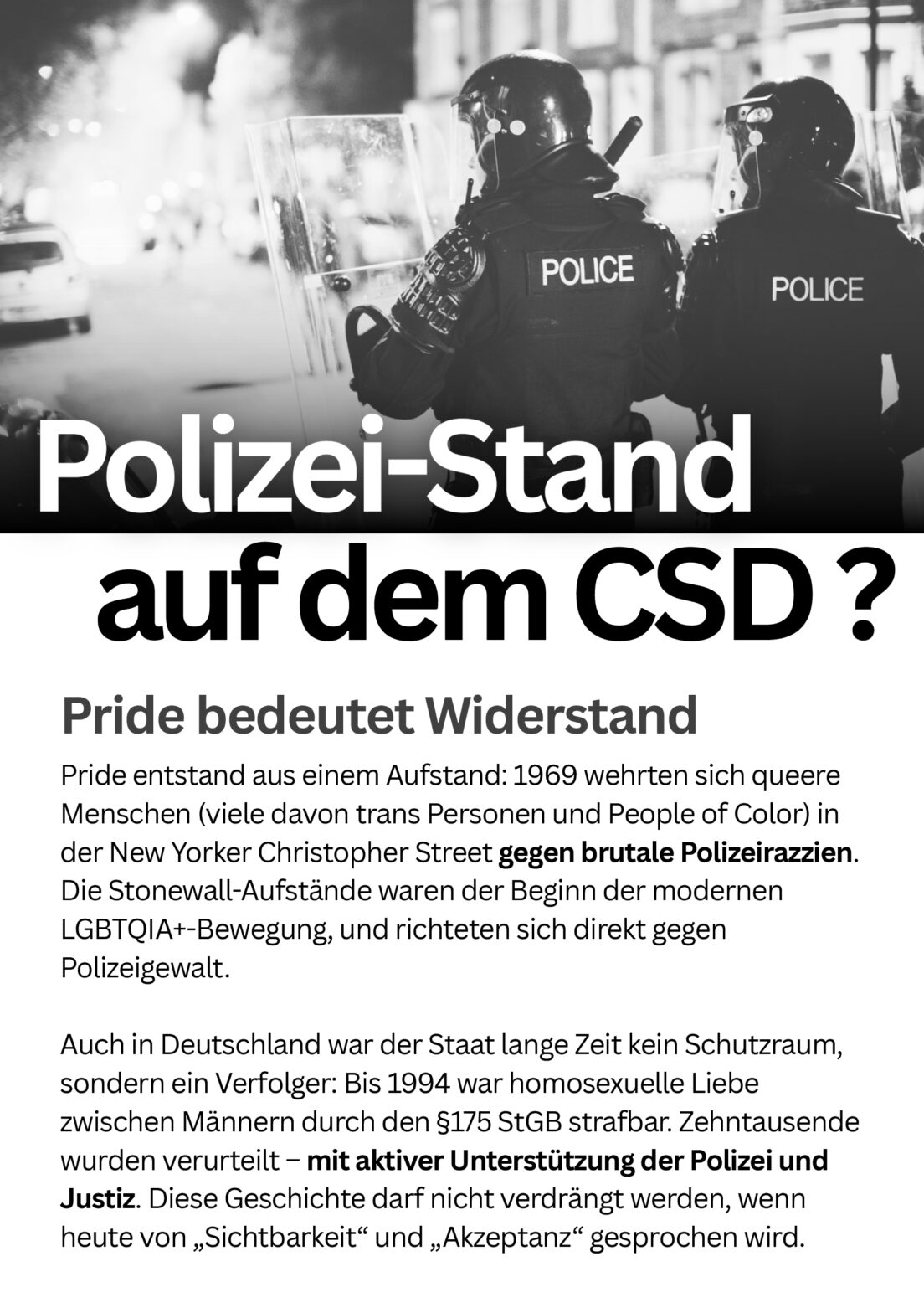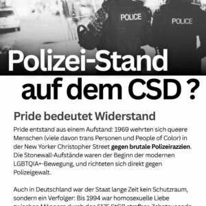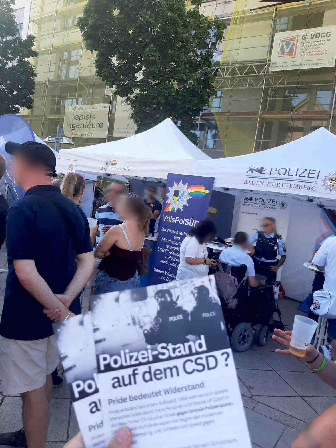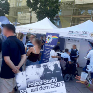 - Zwei verschiedene Polizei- Initiativen hatten Infostände auf dem CSD, die vor allem darauf abzielten junge Nachwuchskräfte zu rekrutieren