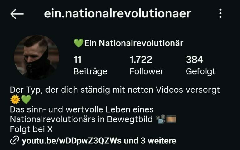 Die im Internet unter dem Pseudonym „ein Nationalrevolutionär“ auftretende Person nimmt regelmäßig an Dritten Weg Veranstaltungen Teil, so zum Beispiel am 29.03.2025 an einer Demonstration in Berlin. Der Dritte Weg ist eine offene neonazistische Kleinstpartei.