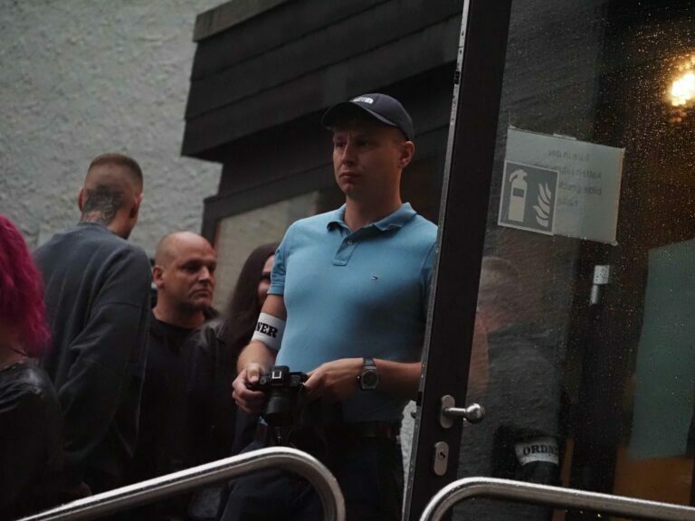 Ein Blick auf die BesucherInnen und Ordner zeigt: unter den Anwesenden waren Neonazis, ein Dritter Weg Kader, Reste der Querdenken- Bewegung, Personen, die der neofaschistischen Identitäre Bewegung nahe stehen, und ein verurteilter Neonazibank- und Sexshopräuber.