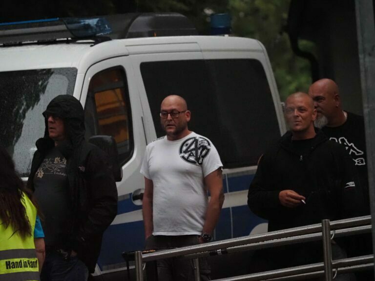 Ein Blick auf die BesucherInnen und Ordner zeigt: unter den Anwesenden waren Neonazis, ein Dritter Weg Kader, Reste der Querdenken- Bewegung, Personen, die der neofaschistischen Identitäre Bewegung nahe stehen, und ein verurteilter Neonazibank- und Sexshopräuber.