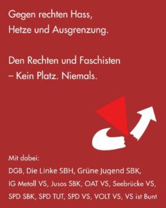 Solidarität heißt zusammen zu stehen und für unsere Zukunft zu kämpfen – gegen rechte Politik, Faschist:innen, Aufrüstung und Krieg.