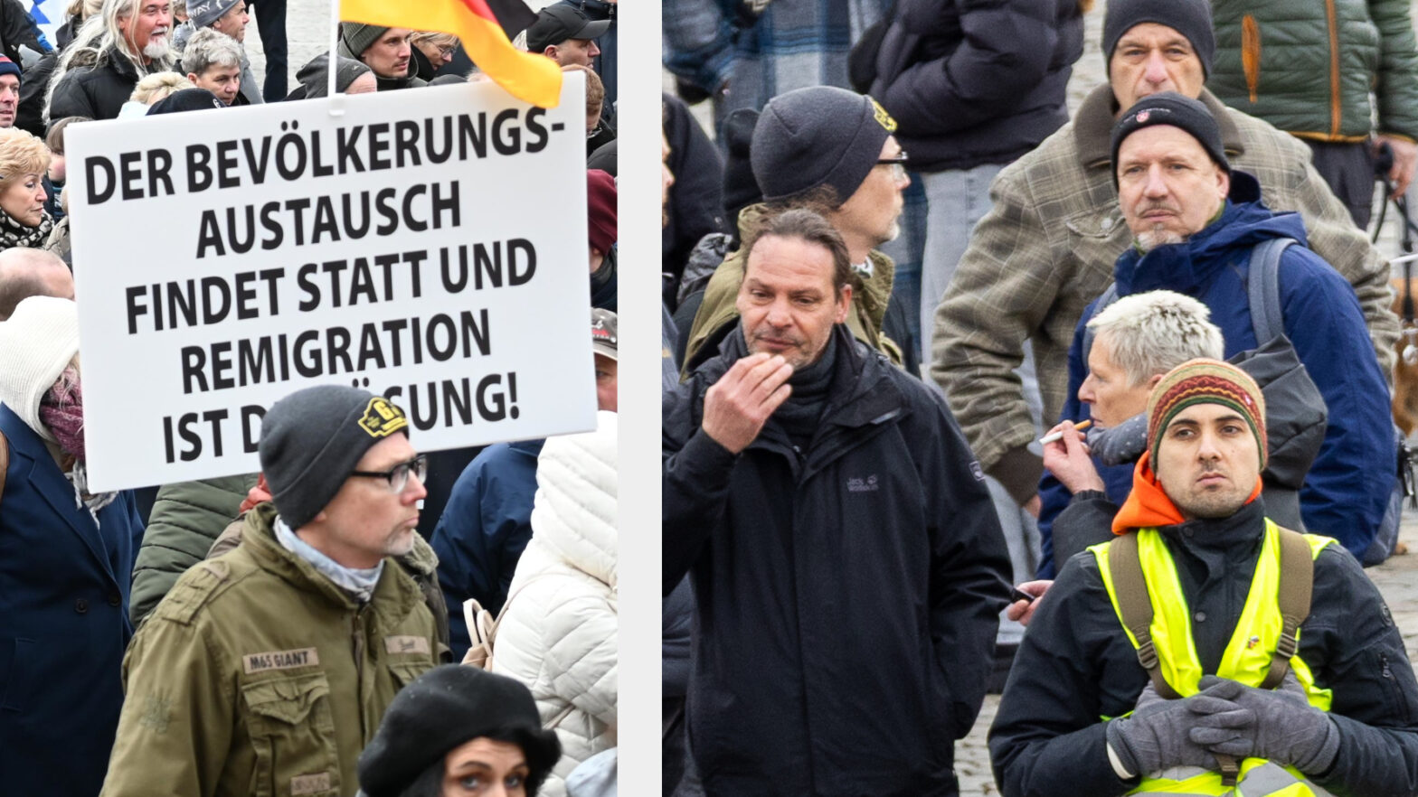 Zwei führende Neonazis im Aschaffenburger Raum waren zu dieser Zeit Falko Schüßler (der sich heute Lars Schüßler nennt) und der heute 88-Jährige Axel Schunk aus Stockstadt. Mit ihnen steht Michael Brand offensichtlich in freundschaftlichem Kontakt. Fotos zeigen den Reserveoffizier zusammen mit Schüßler am 26. Januar 2025 auf dem Aschaffenburger Schloßplatz auf einer Kundgebung von Rhein-Main-steht-auf (RMSA). Wenige Wochen später, am 22. Februar, ist Brand zu Beginn eines Aufzugs von RMSA auf dem Aschaffenburger Volksfestplatz erneut mit Schüßler dokumentiert. Bei ihnen steht Axel Schunk und auf dem folgenden Aufzug liefen Brand und Schunk zusammen.