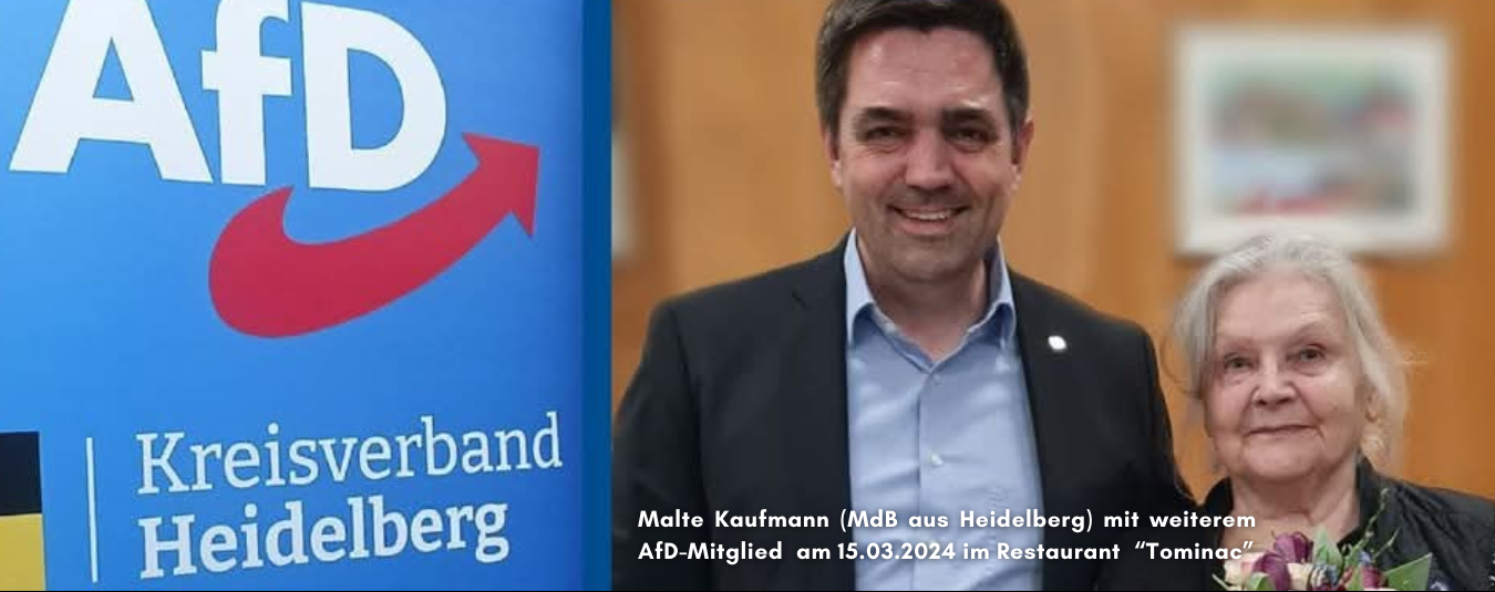 Unsere Recherchen zum Restaurant „Tominac“ belegen, dass sich die AfD mindestens seit 2023 dort trifft. Deshalb gehen wir davon aus, den zentralen Veranstaltungsort, den die AfD aktuell für Stammtische in Heidelberg nutzt, aufgedeckt zu haben. Verbreitet die Info, vor allem, falls ihr Menschen kennt, die bisher im Restaurant „Tominac“ (Dossenheimer Landstraße 151, Heidelberg) essen gegangen sind.