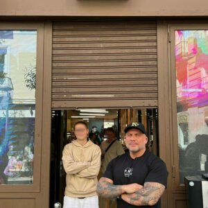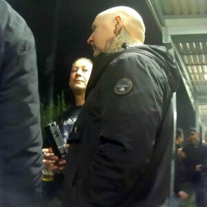 Wie schon im Jahr zuvor, reiste Heiko Sauer auch im November 2025 nach Italien. Im Schlepptau hatte er nicht nur seine Partnerin, sondern einen bislang namentlich unbekannten Hammerskin, der wie Sauer dem Chapter «Pommern» angehören dürfte. Darauf verwies der Unbekannte am Samstag beim „Hammerfest“ mit einem kleinen Metall-Pin an seiner Jacke. „The Last Resort Pommern“ stand im November 2024 auf seinem Pullover, als er mit Sauer auf dem Weg zum EOM ins «Skinhouse Milano» war.