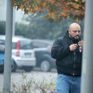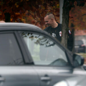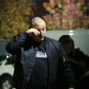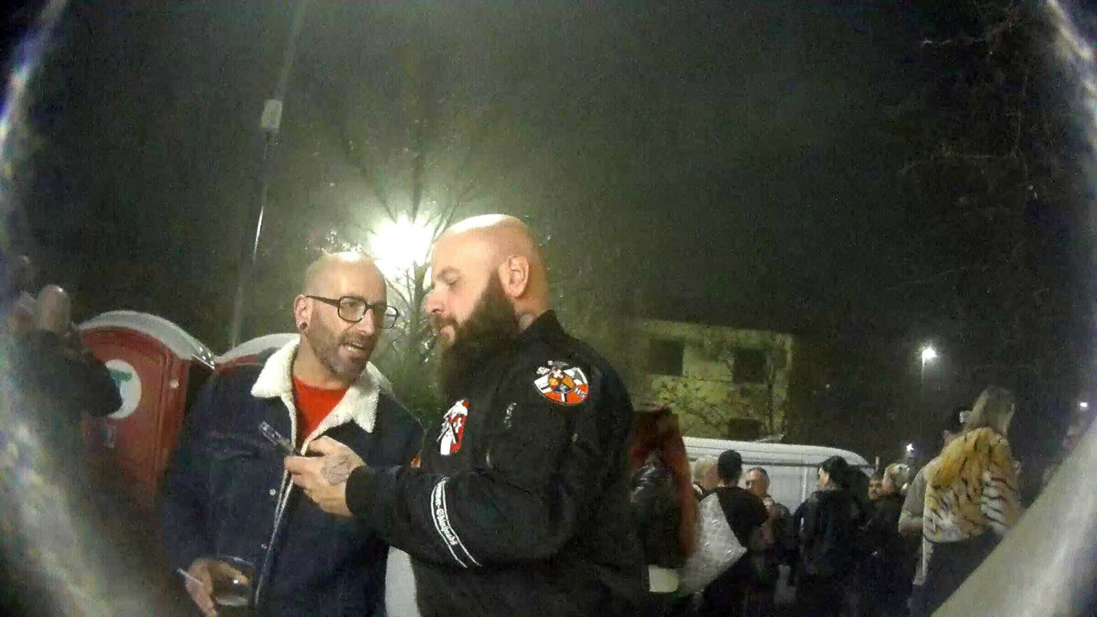 Der US-Hammerskin Travis George Miskam am Einlass des „Hammerfest“ 2025 in Italien – Bildrechte: Exif-Recherche