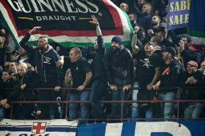Cancelli, der als Tätowierer arbeitet und um 2010 seine Zeit als Prospect bei den IHS absolvierte, gehört zusammen mit Giacomo Pedrazzoli und Guiseppe Locatelli, der vor wenigen Jahren noch Betreiber der «Da Oak Whiskeria» in Mailand war, zur Führungsriege der «Irriducibli». Dies ist eine langjährig aktive Ultra-Gruppierung, die Teil der Ultraszene «Curva Nord» im Stadion des Fußballclubs Inter Milano ist. Bis 2022 konnten die Ultras der «Curva Nord» in und um das Stadion des Clubs lukrativen Geschäften nachgehen: im Ticketverkauf, an den Essens- und Getränkeständen, im Geschäft um Fanartikel und in der Parkplatz-Bewirtschaftung. Zehntausende Euros konnten so steuerfrei erwirtschaftet werden. Im Oktober 2022 kriselte es allerdings in der «Curva Nord», ein Auftragsmord an einer der führenden Personen war die Folge. Infolgedessen kam es mehrfach zu Versuchen der Machtübernahme in der Kurve und im lukrativen Geschäft, auch durch die Hammerskins rund um die «Irriducibili». Der Versuch von Pedrazzoli und den anderen IHS scheiterte, trotz der Hilfe von Demenico Bosa (alias „Mimmo Hammer“), der laut mehreren Medienberichten die IHS anführen soll und selbst Teil eines Mafia-Clans ist. Eine Mitgliedschaft von Bosa bei den IHS kann hier nicht verifiziert werden, auch wenn Bilder interner Hammerskin-Zusammenkünfte ein enges Verhältnis von Bosa zu den bekannten IHS nahelegen. Im Kampf um die Führung in der «Curva Nord» gingen ab 2022 jene Personen hervor, die sich Unterstützung bei der ‘Ndrangheta, der kalabrischen Mafia, holten. Im Stadion selbst musste die «Irriducibili» die «Curva Nord» verlassen. Glück im Unglück für die «Irriducibili», die „Unbeugsamen“, denn im Oktober 2024 folgte ein weiterer Mord in der Führungsetage der «Curva Nord». Im Zuge der darauf eingeleiteten Polizei-Operation soll auch ein Hammerskin kurzzeitig verhaftet worden sein. Im Sommer 2025 teilte dann die Vereinsführung von Inter Milano mit, dass die «Curva Nord» als Zusammenschluss im Stadion verboten werde. Auch wolle man bekannte Straftäter und Personen mit Mafia-Hintergrund von den Spielen ausschließen. Das müsste die IHS um «Irriducibili», die sich im Stadion teils in kompletter Hammerskin-Kluft präsentierten, aktuell ebenfalls betreffen. Davide Cancelli veröffentlicht in den sozialen Medien allerdings weiterhin Bilder, die ihn und andere „Irriducibili» bei Spielen von Inter Milano zeigen.