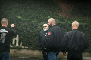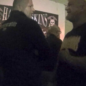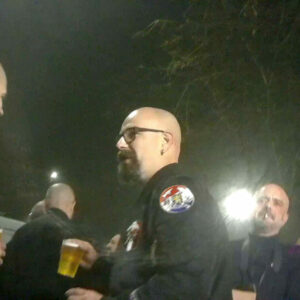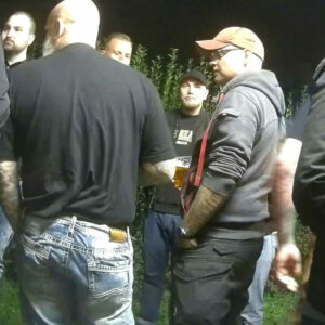 Tatsächlich fehlte an dem Wochenende im November 2025 in Italien fast kein deutsches Chapter. So waren die «Hammerskins Franken» mit den Fullmembern Uwe Gebhardt, Frank Zunner, Oliver Besters, Roland Brechtl, Dirk Breuer, Stefan Großhauser und Andreas Steinbauer vertreten. Mit dem Zurschaustellen von Symbolen der HSN hielten es die genannten Neonazis unterschiedlich. Während etwa Breuer nur mit einem Shirt zu Ehren der Neonazi-Ikone Ian Stuart Donaldson bekleidet war, zeigte sich Zunner im Shirt und mit Patch der HSN. Dieser abnehmbare, mit Klett versehene Patch schien bei den deutschen Hammerskins in Italien sehr beliebt gewesen zu sein. Warum, zeigte Andreas Steinbauer eindrücklich. Am Einlass hatte er nämlich noch den Original-Patch seiner «Alpha Industries»-Bomberjacke an der Brust, im Laufe des Abends wechselte er aber zum HSN-Patch. In Italien gefehlt hat Max Schödl, der 2019 noch Anwärter der «Hammerskins Franken» war. Wie ein Foto in den sozialen Netzwerken im Herbst 2024 verriet, wurde Schödl mittlerweile zum Vollmitglied des Chapters „gepatcht“. Zur gleichen Zeit wie Schödl war auch Pascal Väth Anwärter des fränkischen Chapters. Zum vollwertigen Mitglied hat er es jedoch nicht geschafft. Stattdessen verdingt er sich in der Bikerszene, wo er seit etwa drei Jahren im bayrischen Karbach Mitglied des «Gladiators MC» ist.