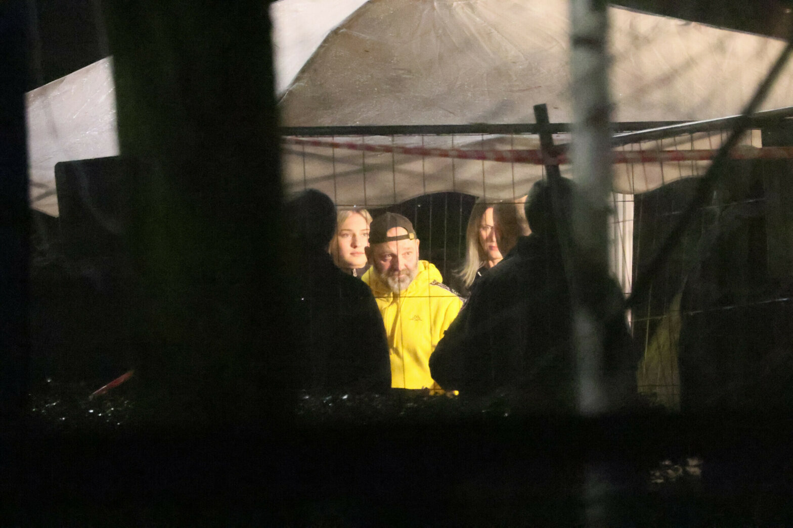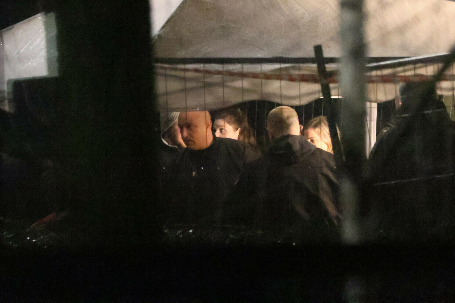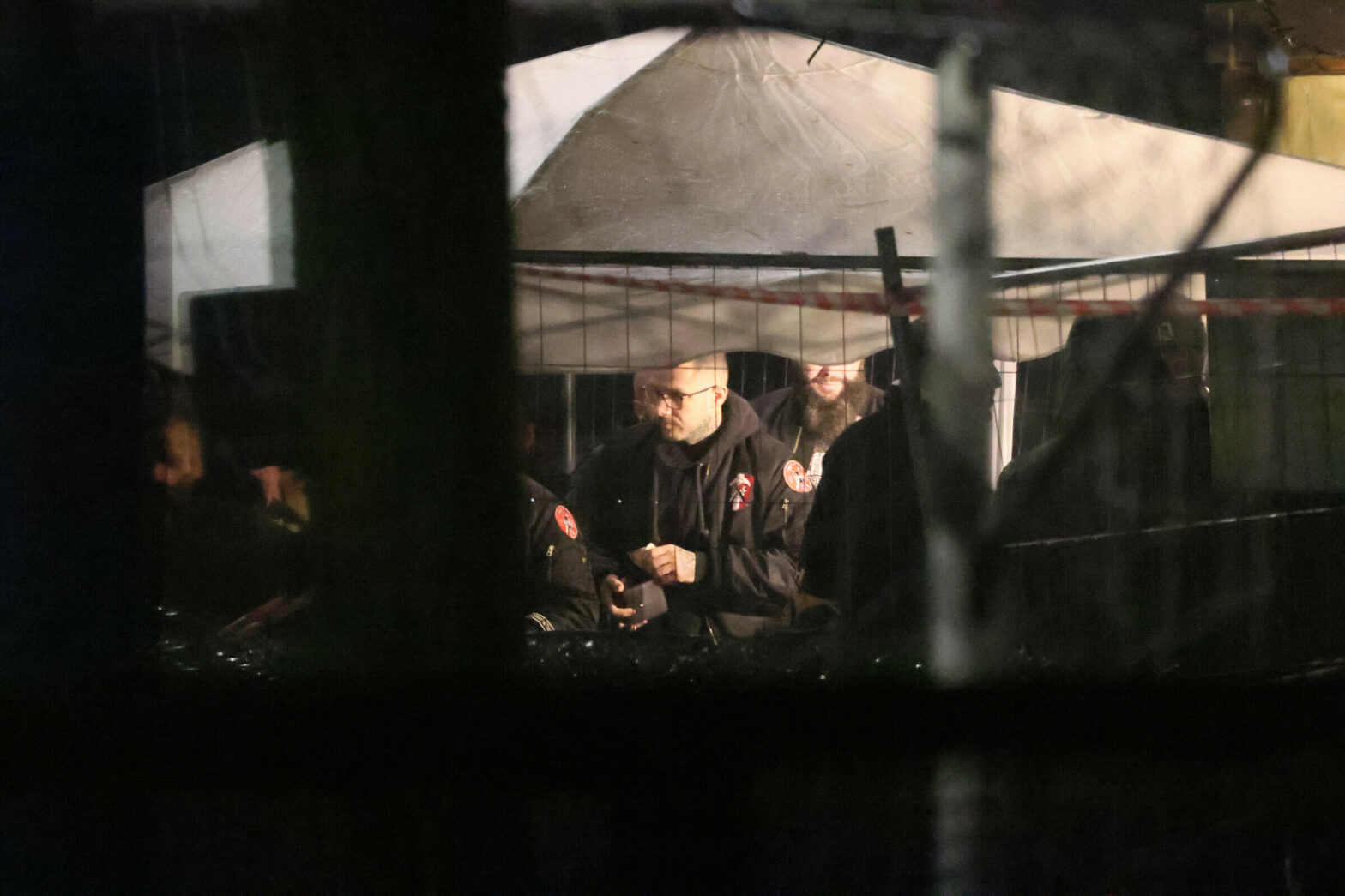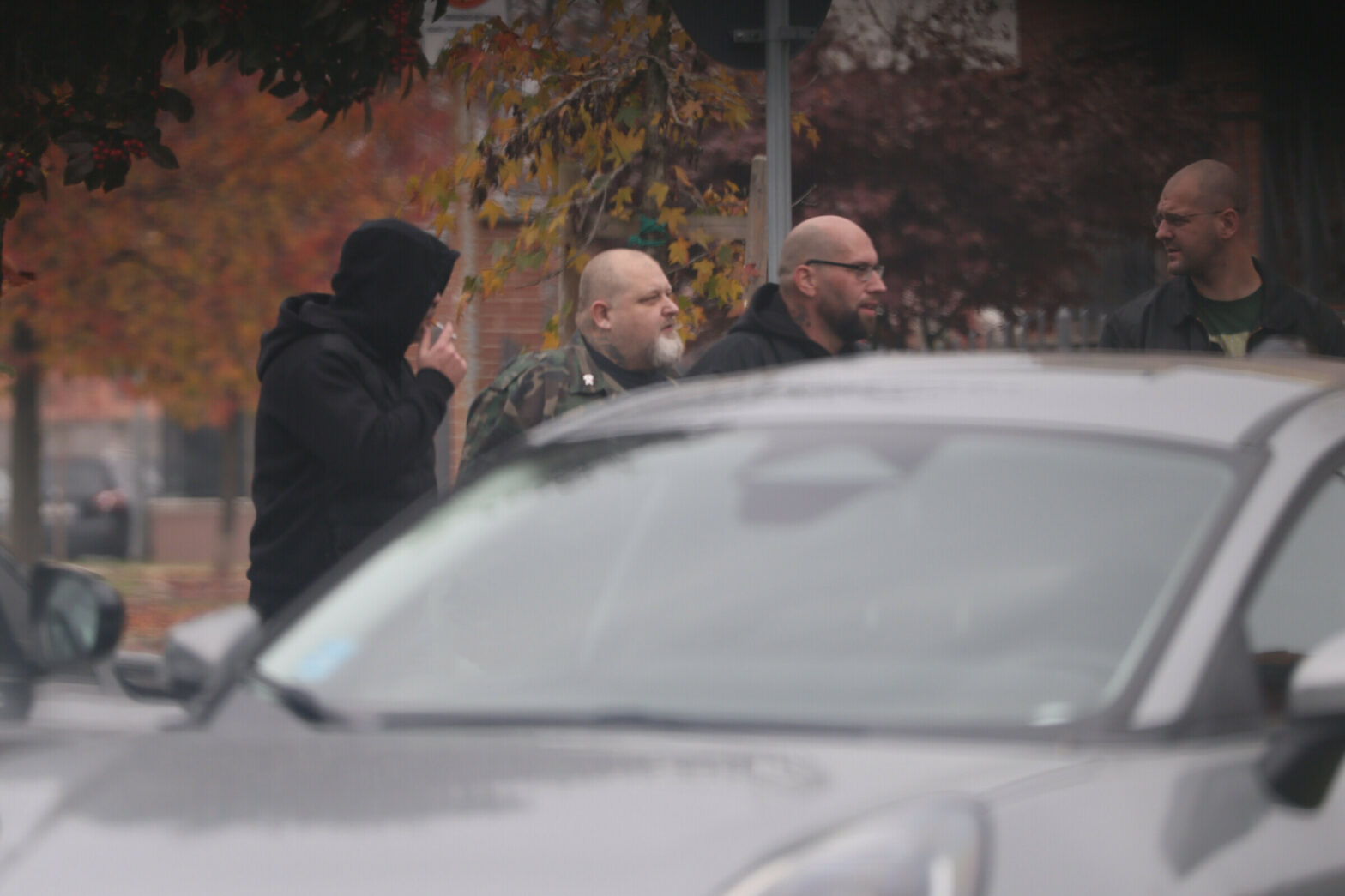 Die ungarischen Hammerskins Zoltan Papp (Vordergrund), Krisztian Szlavecz (links hinter Papp) und Imre Mészei (rechts von Papp) am Einlass des „Hammerfest“ 2025 in Italien – Bildrechte: Exif-Recherche