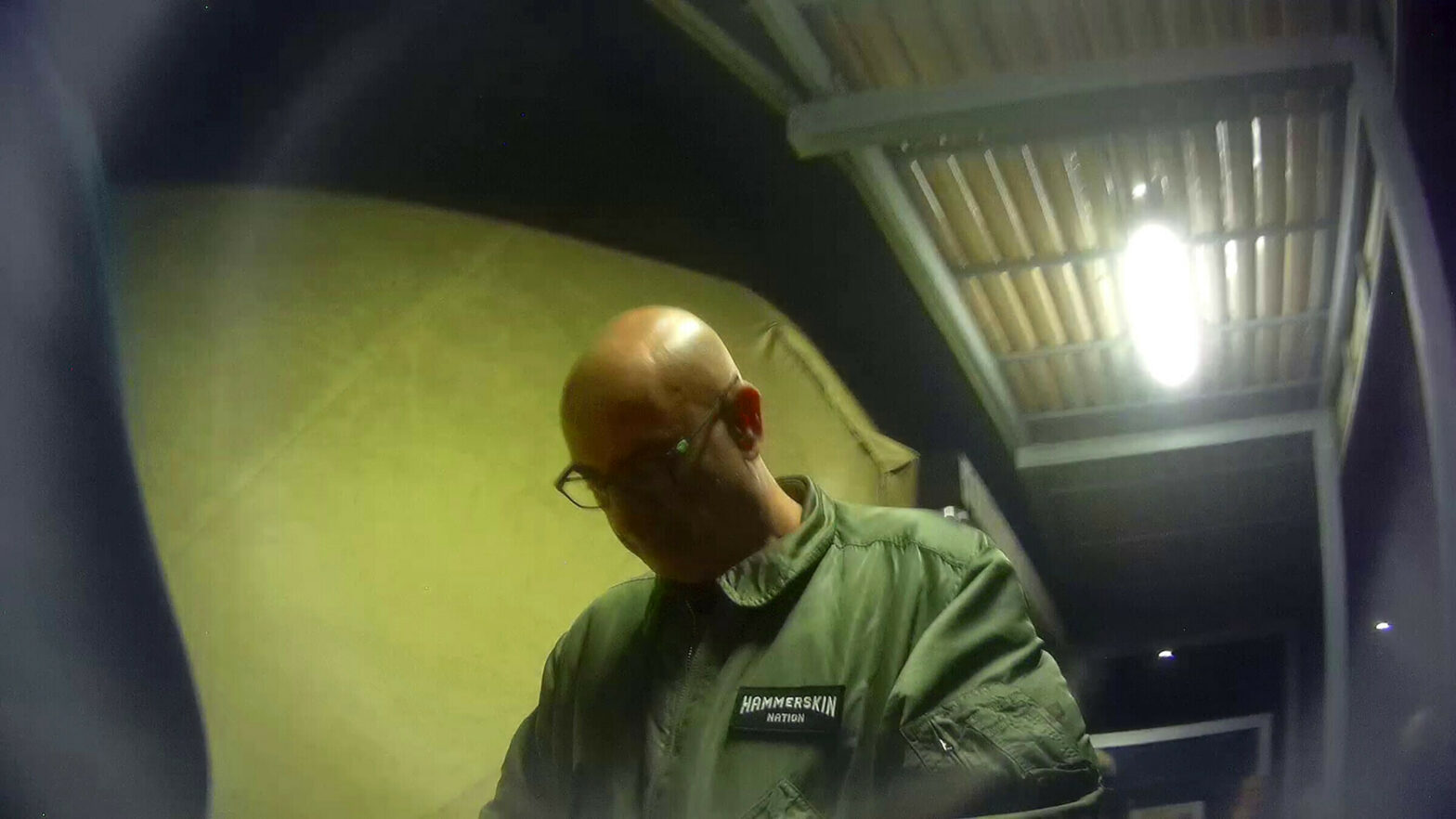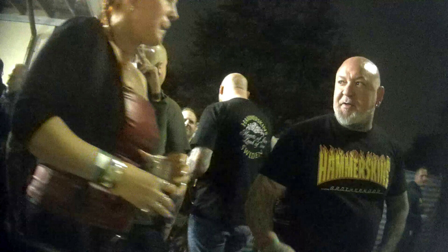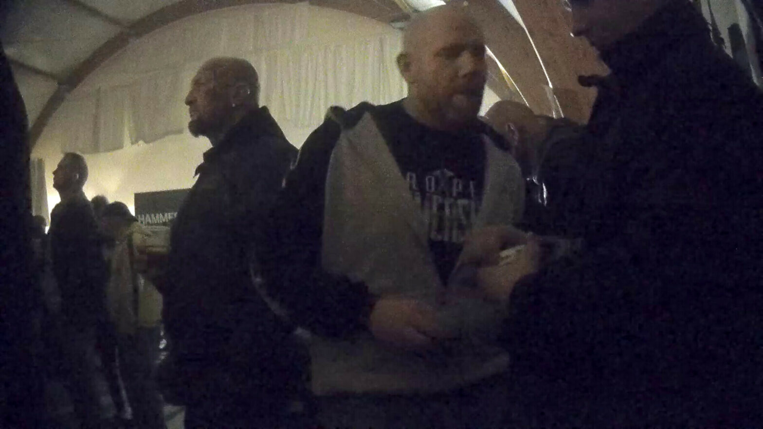 Der US-Hammerskin Travis George Miskam am Einlass des „Hammerfest“ 2025 in Italien – Bildrechte: Exif-Recherche