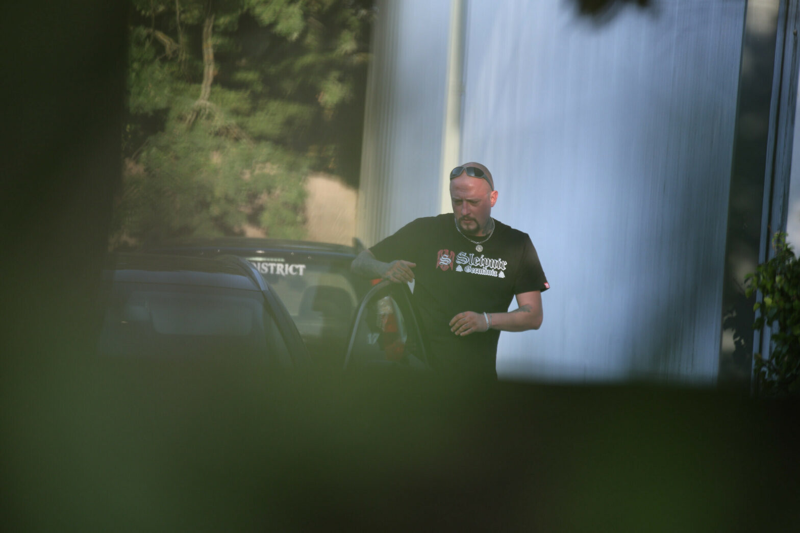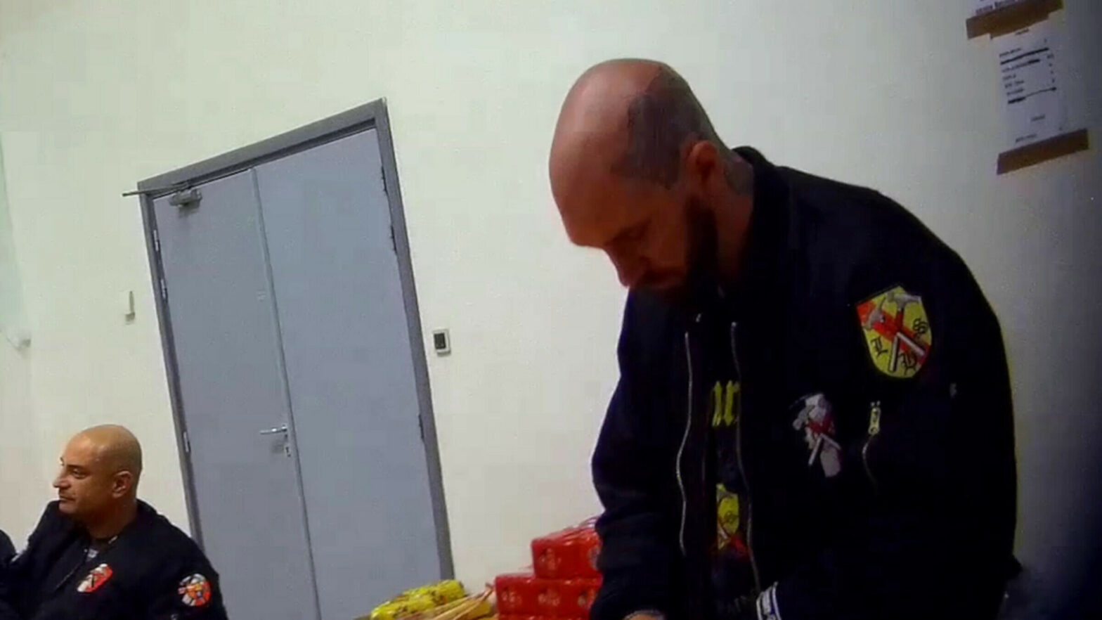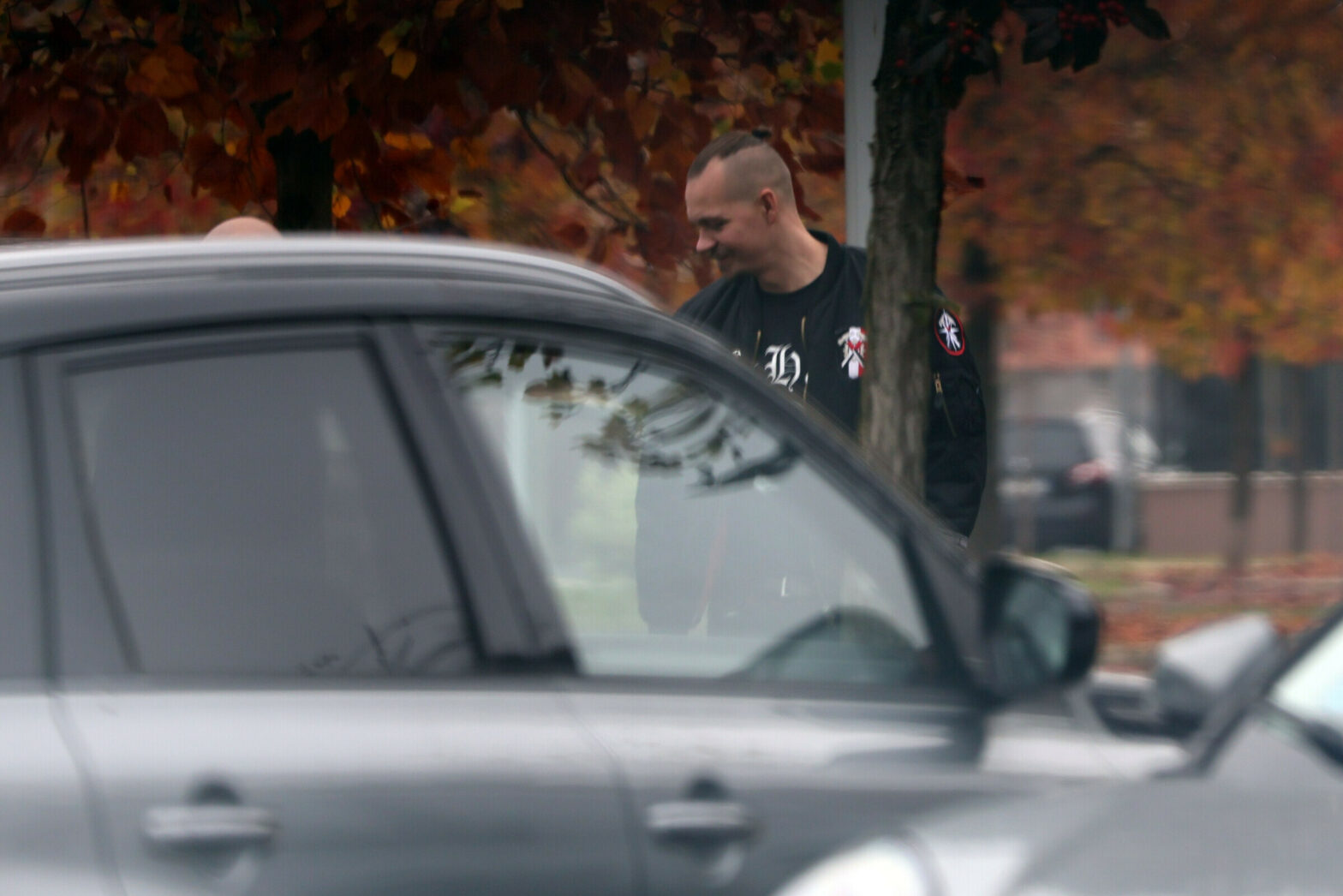 Der US-Hammerskin Travis George Miskam am Einlass des „Hammerfest“ 2025 in Italien – Bildrechte: Exif-Recherche