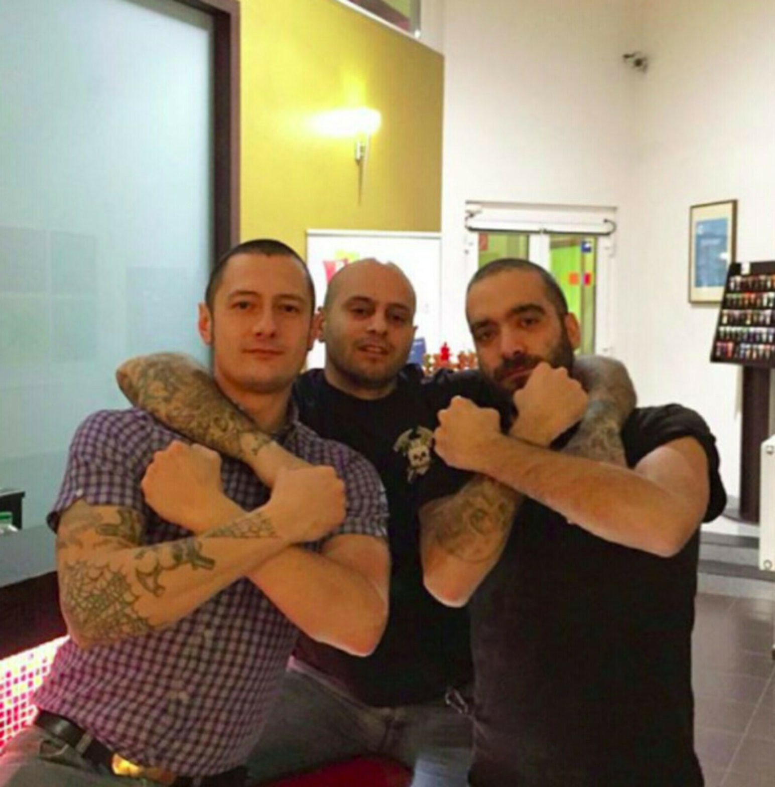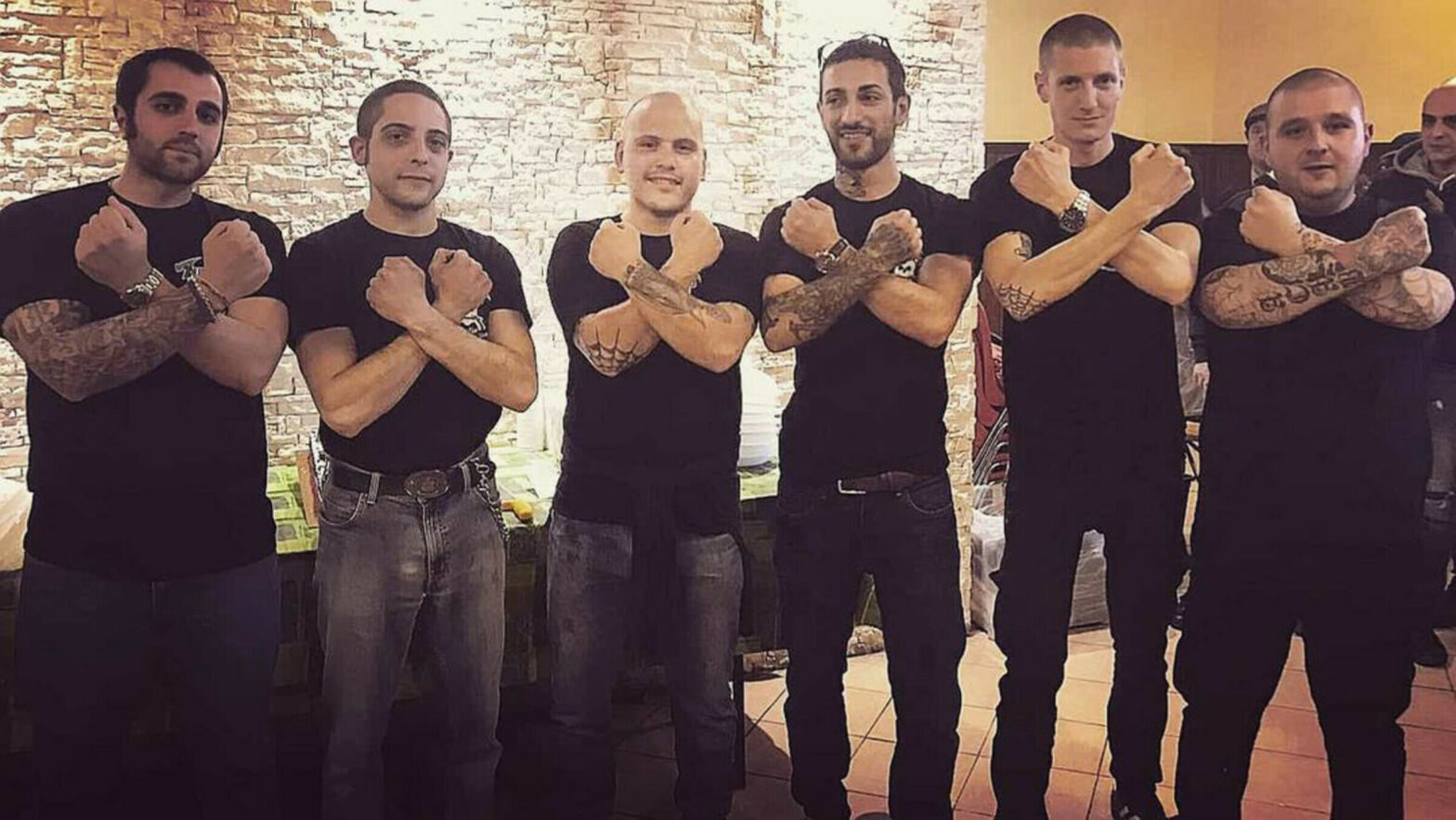Aufstellung der IHS um 2020: Stefano Ghezzi, Sergio Ciccolella, Emanuele Bisogni, „Marco“, Guiseppe Locatelli. Alessandro Liburdi, Antonio Radaelli, Simone Simonetti, Erminio Rigamonti, Marco Garibaldi, Luca Gigliotti, Riccardo Colato, Davide Cancelli, Emanuele di Bari, Stefano del Miglio, mutmaßlich del Miglios Partnerin, Marco Coppola , Andrea Bossi, Mirko Tedesco, Vito Schirone, Pietro Caruso, Paolo Severgnini, Giacomo Pedrazzoli, der Mafiosi Domenico Bosa, Filippo Moroni und „Ciano“ (v.l.n.r.) – Screenshot Instagram
