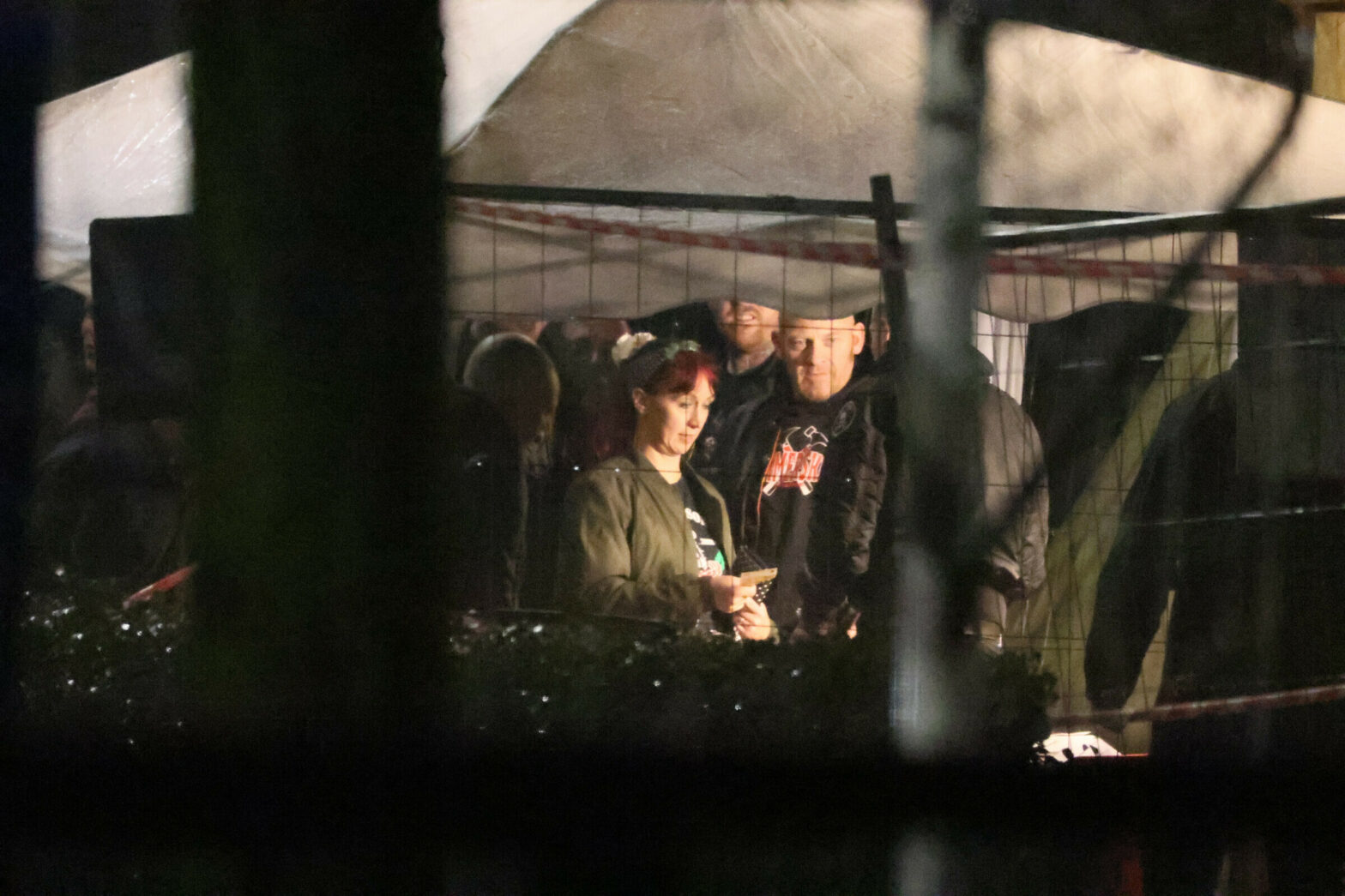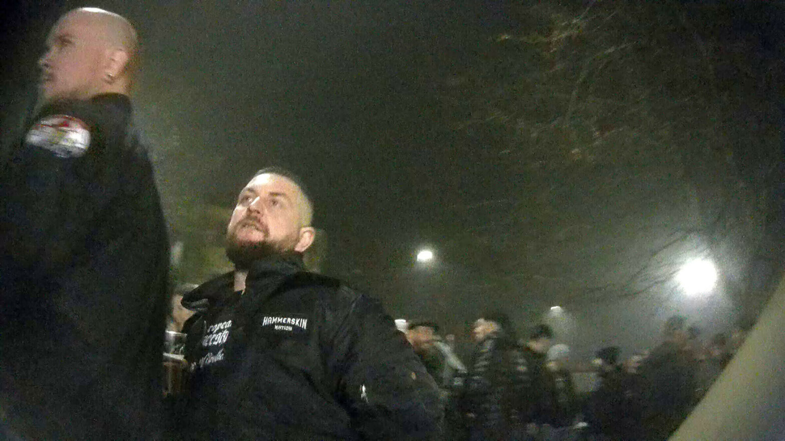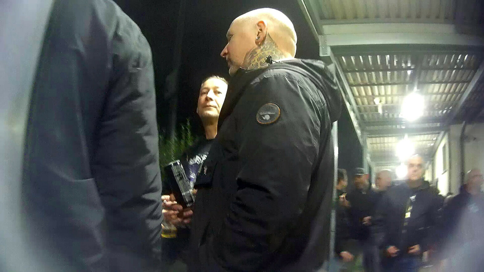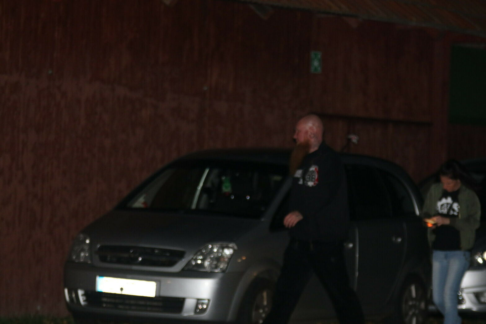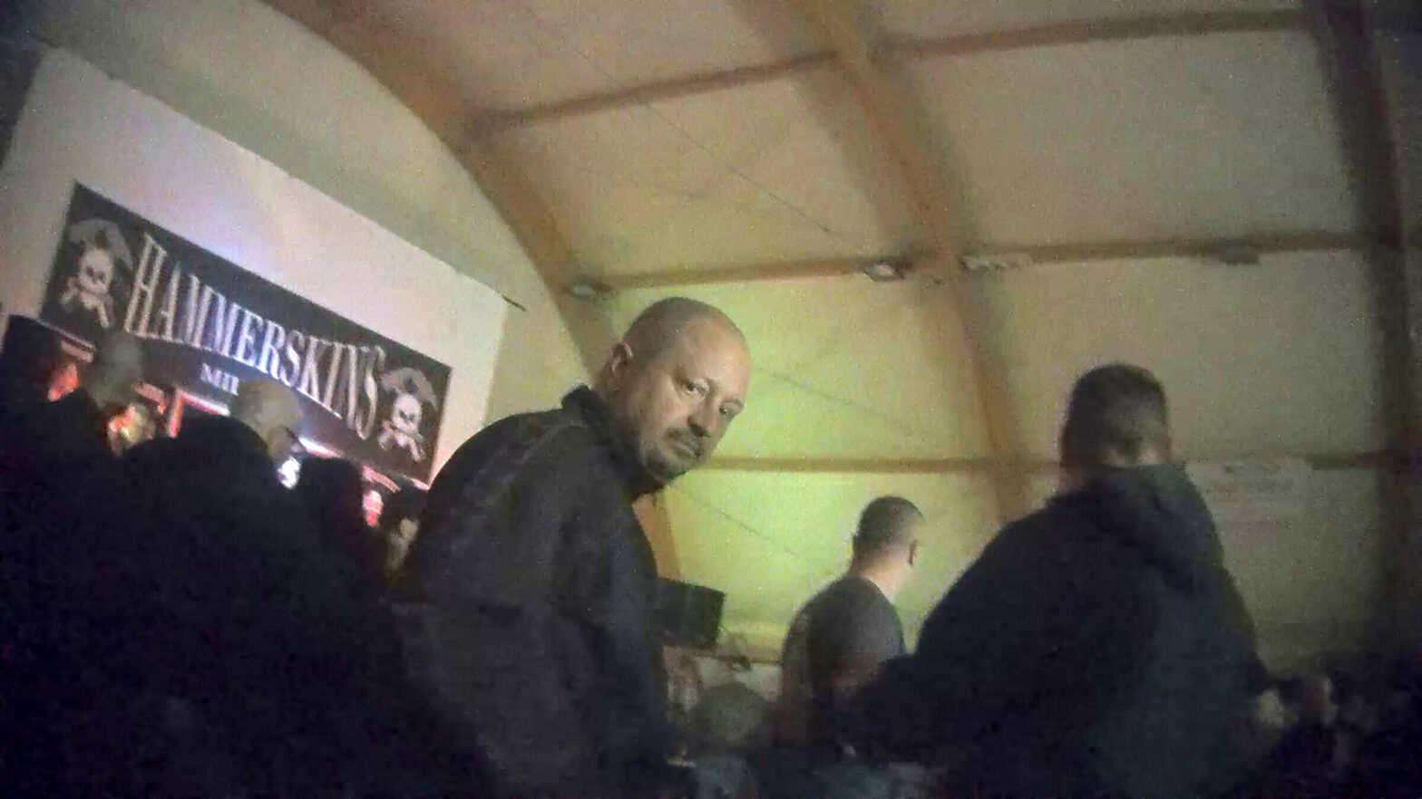 Wie schon im Jahr zuvor, reiste Heiko Sauer auch im November 2025 nach Italien. Im Schlepptau hatte er nicht nur seine Partnerin, sondern einen bislang namentlich unbekannten Hammerskin, der wie Sauer dem Chapter «Pommern» angehören dürfte. Darauf verwies der Unbekannte am Samstag beim „Hammerfest“ mit einem kleinen Metall-Pin an seiner Jacke. „The Last Resort Pommern“ stand im November 2024 auf seinem Pullover, als er mit Sauer auf dem Weg zum EOM ins «Skinhouse Milano» war.