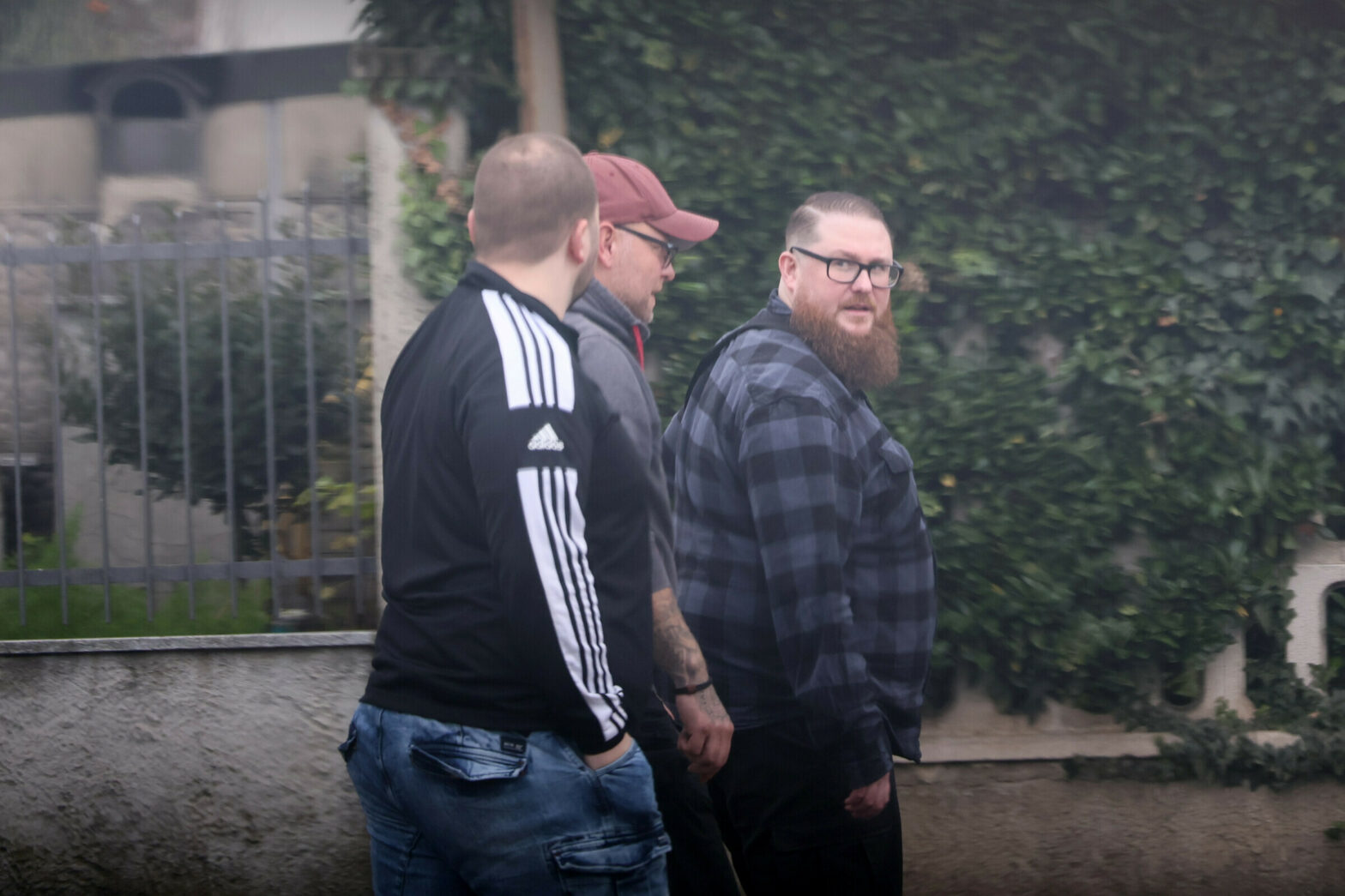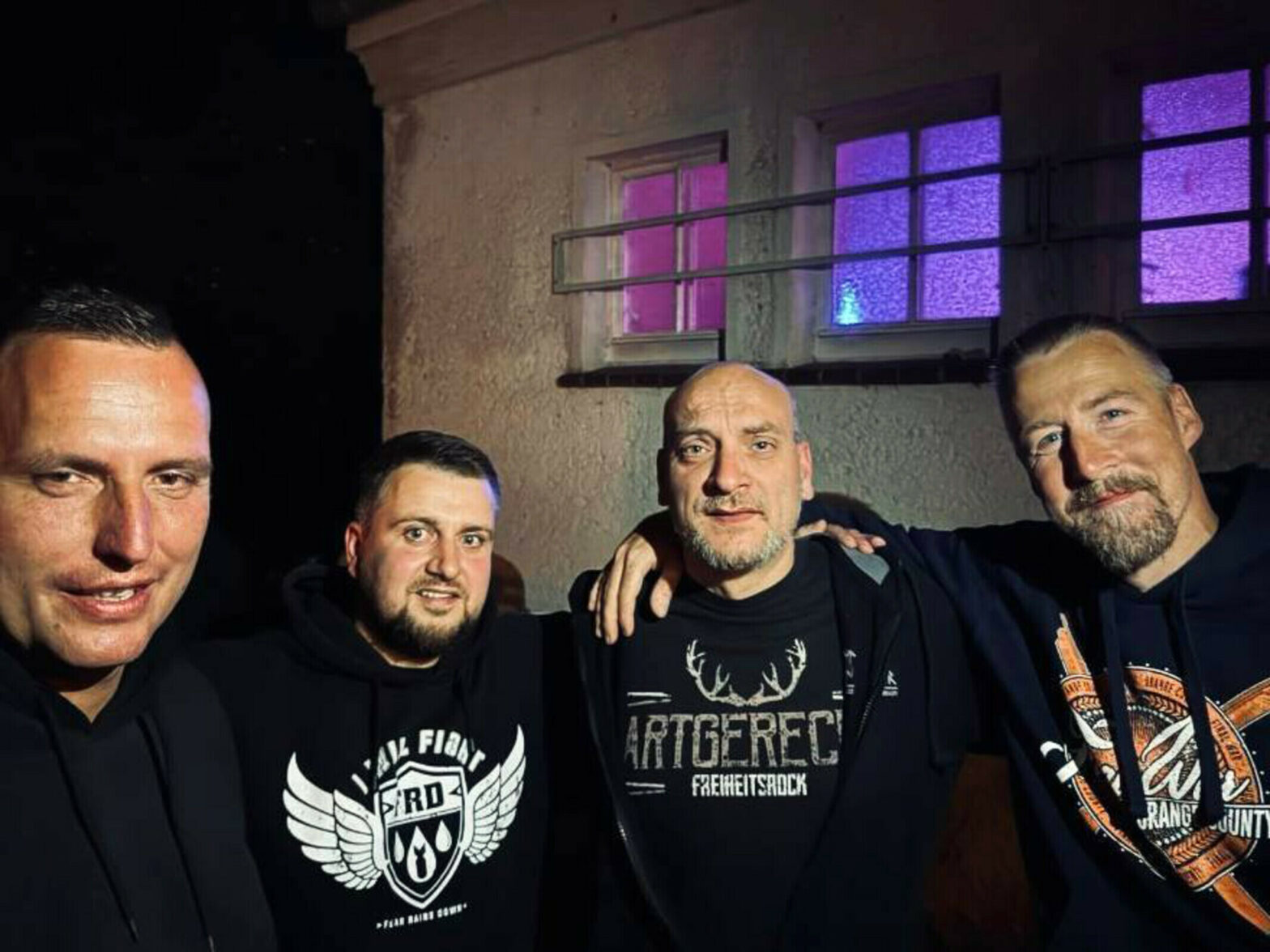 Zwischen B&H und HSN bewegt sich seit Jahren nicht nur der in Italien anwesende Frank Riemoneit aus Wuppertal (Nordrhein-Westfalen), sondern auch Matthias Brüsehaber. Gemeinsam mit seiner Partnerin ist Brüsehaber auf fast allen relevanten Konzerten der beiden Netzwerke, von Schweden bis Italien und Portugal bis Estland, zugegen. Der im Raum Rostock wohnhafte Neonazi ist Sänger der NS-Hardcore-Band «Path Of Resistance» und gehörte in Mecklenburg-Vorpommern der regionalen B&H-Sektion an. In der sächsischen B&H-Sektion war damals ein anderer sehr umtriebig, der ebenfalls im November 2025 auf dem „Hammerfest“ in Italien auftauchte: Jens Schaarschmidt aus dem Raum Chemnitz. Der in einen Baubetrieb tätige Neonazi war in den 1990er Jahren Herausgeber des Fanzines «Foier Frei» und wirkte in der RechtsRock-Band «Auf eigene Gefahr» (AEG) mit. Brisant ist vor allem, dass er damals in Chemnitz zum Unterstützerkreis der rechtsterroristischen Gruppe NSU gehörte. Mit Thomas Starke, der dem NSU u.a. Sprengstoff besorgte, reiste Schaarschmidt 1997 in die USA. Dort trafen sie auf die Mitglieder der Neonazi-Band «Blue Eyed Devils» und gelangten in Kontakt mit Waffen, wie Fotos bezeugen. Schaarschmidt war viele Jahre als Mitglied der organisierten Neonazi-Szene nicht sichtbar. Dies änderte sich, als er im Februar 2025 am geschichtsrevisionistischen „Ausbruch“-Marsch in Budapest (Ungarn) teilnahm. Mit Schaarschmidt waren weitere, namentlich bislang unbekannte Neonazis im November 2025 in Italien, die als langjährige Aktivisten aus der Neonaziszene im Raum Chemnitz bekannt sind.