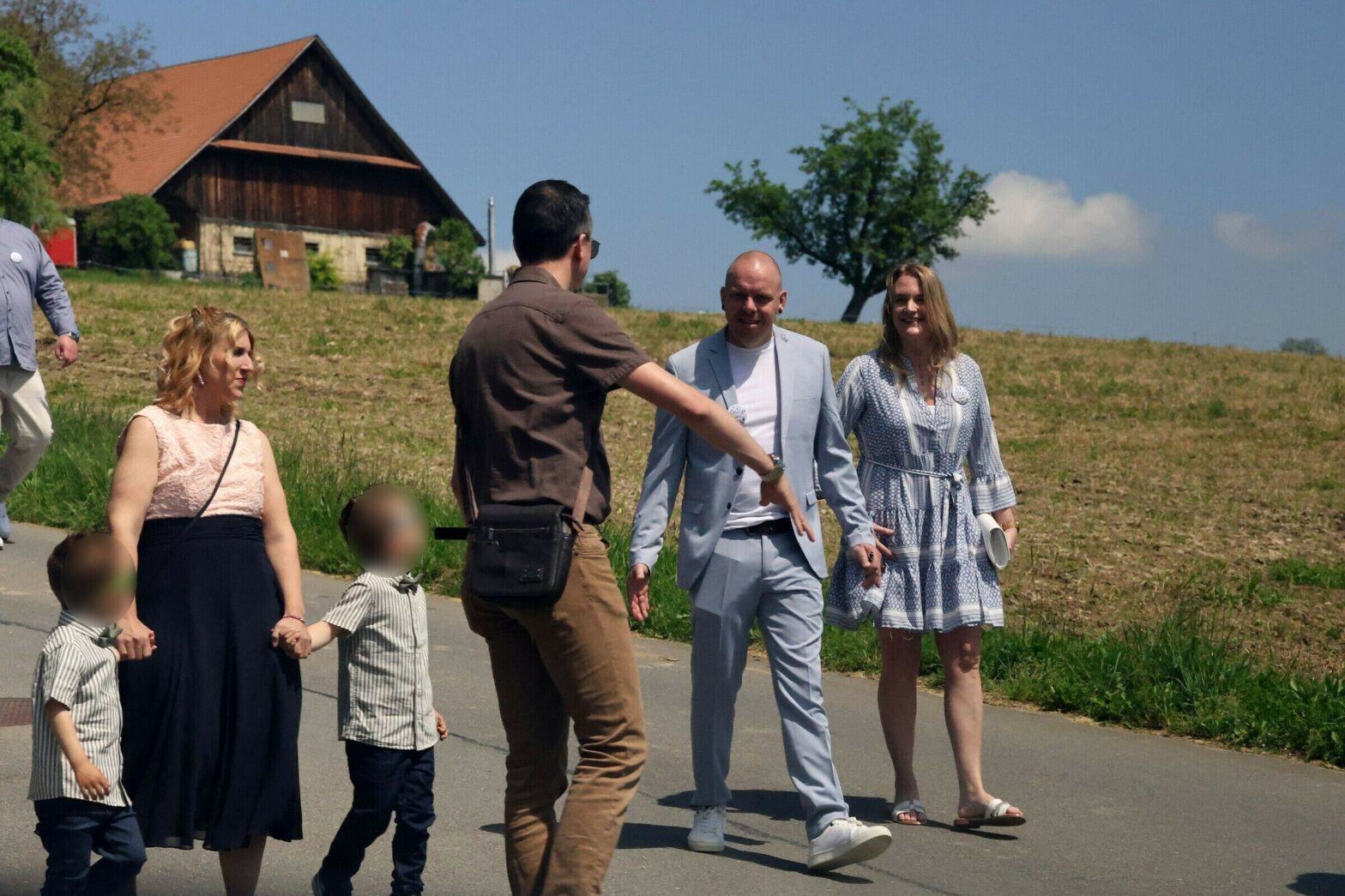 Stefan Silar-Winkler (in Trainingsjacke) und u.a. Tanja Steinhagen-Wollf (2.v.l.) auf dem „Hammerfest“ 2025 in Italien – Bildrechte: Exif-Recherche