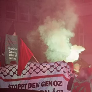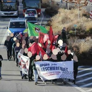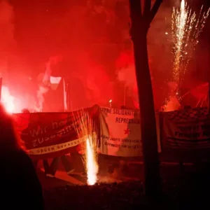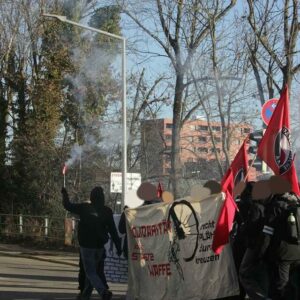 Neben der Demonstration in Karlruhe gab es in vielen Städten Grüße an linke Gefangene. Zum Beispiel an Leandra von den sog. Ulm5 in Memmingen. In Stuttgart gab es an der berüchtigten JVA in Stammheim bereits einige Tage vor Silvester eine spontane, unangemeldete Demonstration; den Bericht findet ihr hier. Am Nachmittag des 31.12.2025 zogen einige Genoss:innen u.a. vom OAT auch in Pforzheim ans dortige Abschiebegefängnis, um – auch mit Feuerwerk – die Gefangenen zu grüßen:
