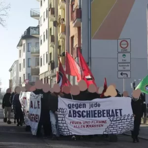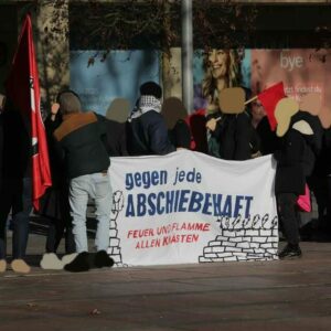 Dieser Staat sperrt Menschen unserer Klasse ein. Er macht sie zu sozialen Gefangenen, und steckt sie in den Knast, weil sie sich keine Fahrtickets leisten können, weil sie ihre Miete immer teurer wird und sie auf der Straße landen, weil sie klauen müssen, um zu überleben. Er verhaftet sie und sperrt sie ein, um sie möglichst unkompliziert in Länder abschieben zu können, in denen ihnen Armut, Hunger und Verfolgung drohen, in denen Krieg herrscht – mitfinanziert von deutschen Banken, mitverursacht von deutschen Waffen.
