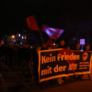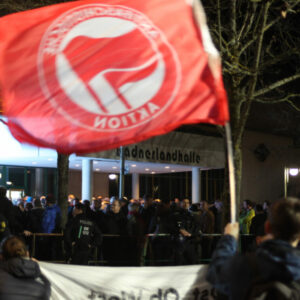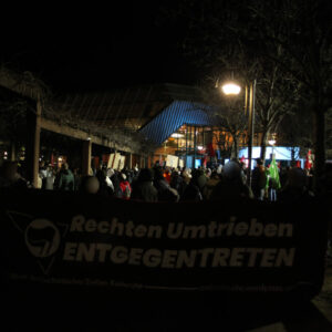 Der Wahlkampf fängt gerade erst an. Stürmische Zeiten liegen vor uns und die Zukunft sieht nicht gerade rosig aus. Wenn wir es ernst meinen mit dem Kampf gegen den Faschismus, dann müssen wir alle mit an Bord holen, die mit uns diese rauen Gewässer bestreiten wollen. Das bedeutet, dass wir das Problem an der Wurzel packen. Dass wir gemeinsam für eine Welt kämpfen, in der der Faschismus keinen Fuß fassen kann. Dass wir uns Faschist:innen in den Weg stellen, überall dort, wo sie auftauchen. Das heißt konkret: so wie heute sich der AfD lautstark entgegenzustellen. Aufmärsche verhindern und Infostände blockieren. Im Kleinen wie im Großen verhindern, dass sie ihre rechte Propaganda verbreiten können. Unsere Ablehnung ist schön und gut, aber sie bringt nichts, wenn wir sie nicht in die Praxis umsetzen. Also lasst es uns gemeinsam anpacken! Für einen konsequenten Antifaschismus, 365 Tage im Jahr!