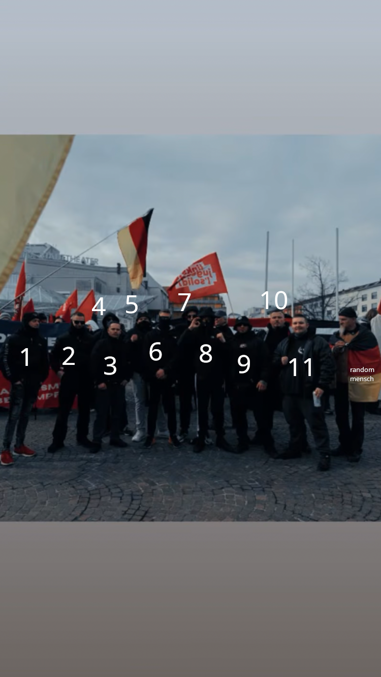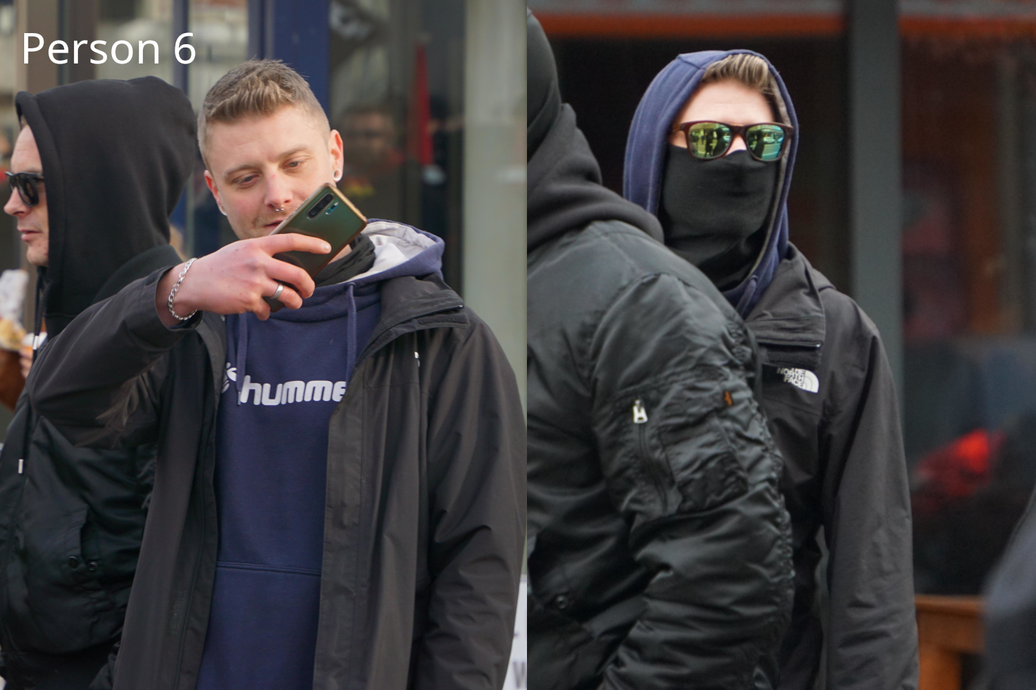 Person 4: Unbekannt, ebenfalls schon beim CSD und bei der GfD Veranstaltung in Neunkirchen anwesend (selbe Jacke mit DE-Fahnen-Patch). Unterwegs mit 5 und 8.