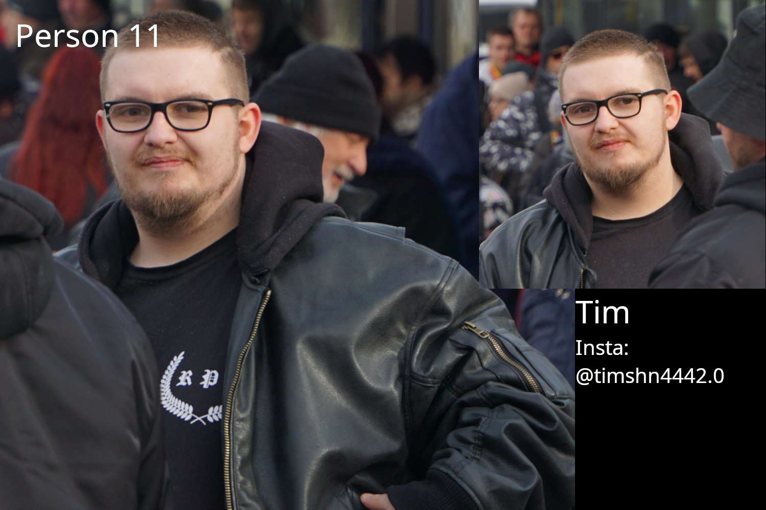 Person 10: “Dean Lucien”, auf Insta @deanlucien.hfmn. Nostril und sehr auffälliges Gesichtstattoo. Schien recht gut mit Tim (Person 11) und Dino C. Auf jeden Fall nicht aus Pforzheim.
