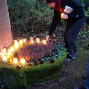 Unser Erinnern blieb nicht in der Vergangenheit stehen. Wir richteten den Blick bewusst auf die Gegenwart, denn Antisemitismus und faschistische Ideologien haben in Deutschland Kontinuität. Wer „Nie wieder“ ernst nimmt, muss verstehen: Nie wieder dürfen Menschen von Rechten und Faschist:innen zu Zielscheiben von Hass gemacht werden.