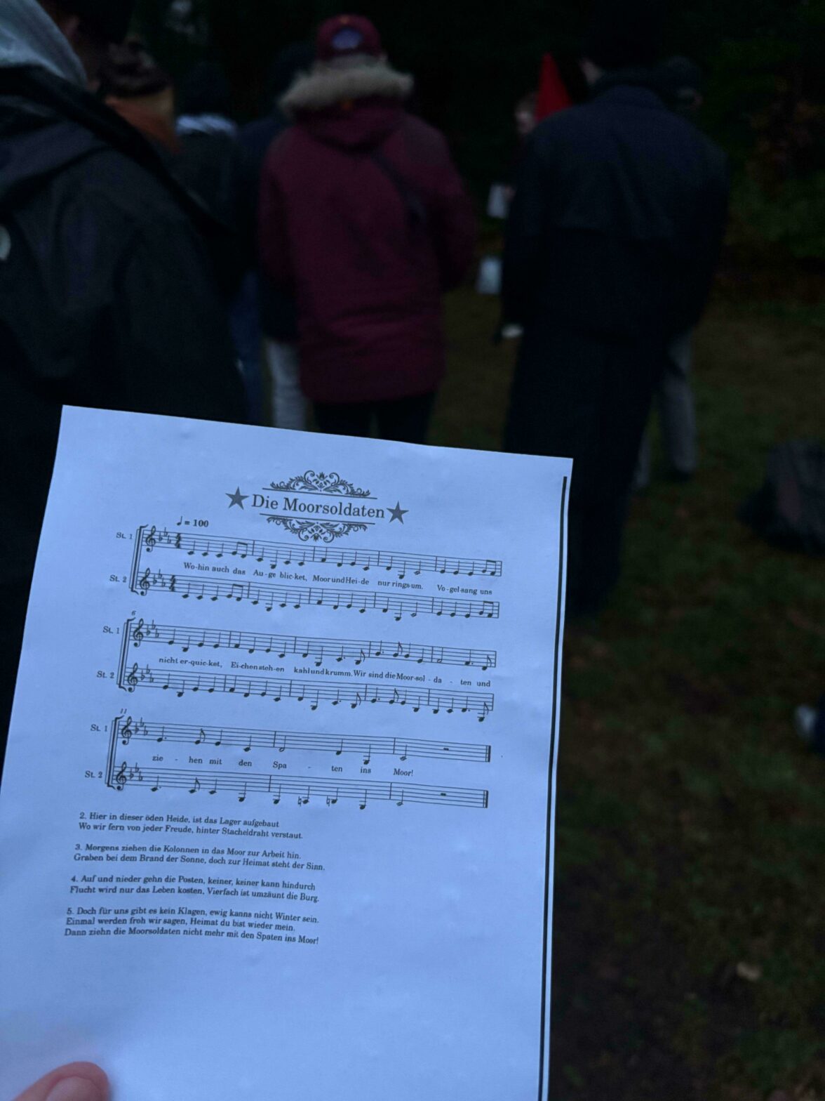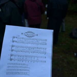 Der Chor „Antifa Cantata“ begleitete das Gedenken mit dem jüdischen Lied „Still die Nacht ist voller Sterne“, das an den Widerstand gegen die nationalsozialistische Besatzung erinnert. Kerzen und Nelken wurden am Mahnmal niedergelegt, gefolgt von einer Schweigeminute.