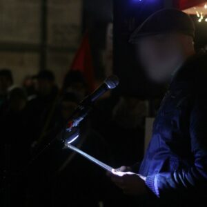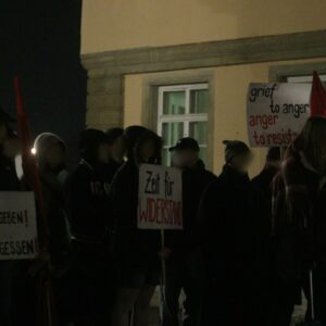 Danach wurde auf den aktuellen Antisemitismus in der neuen Rechten eingegangen. Dieser zeige sich in einem Strategiewechsel der Rechten. „Anstatt zu leugnen, relativieren sie (…) Täter werden zu Opfern gemacht, Verantwortung wird verwischt. So werden der Holocaust und die Verbrechen verharmlost“. Zum Ende der Rede wurde die Notwendigkeit des antifaschistischen Kampfes betont und wie wichtig es ist, das Leben und die Geschichten der der im Holocaust Ermordeten niemals zu vergessen.