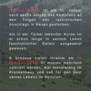 Ibrahim Akkuş ist am 10. Januar nach sechs Jahren des Kämpfens an den Folgen des rassistischen Anschlags in Hanau gestorben.