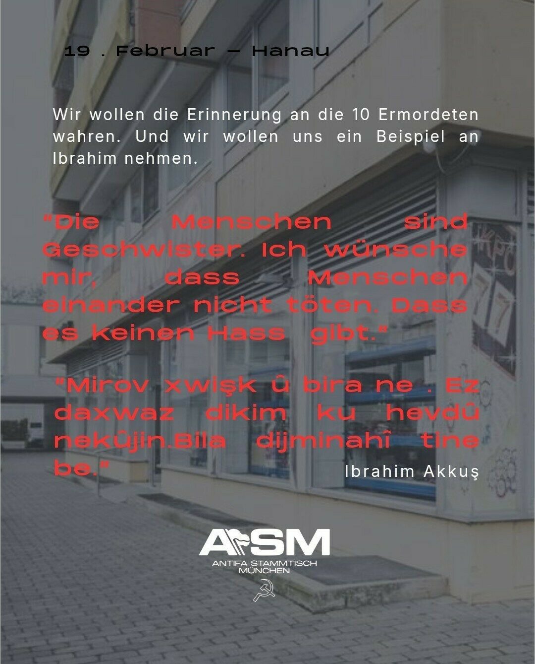 Lasst uns zusammen am 19. Februar den 10 Ermordeten gedenken.
