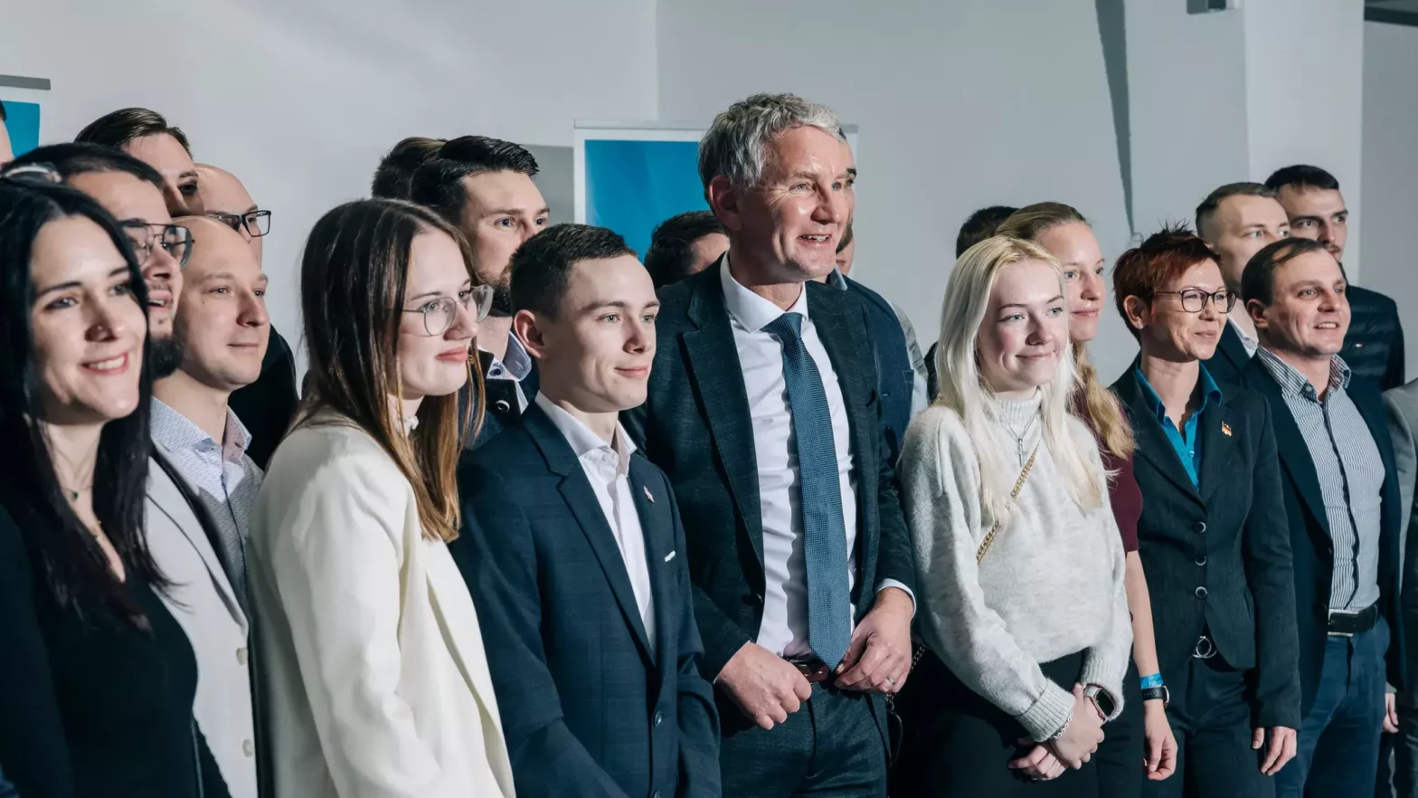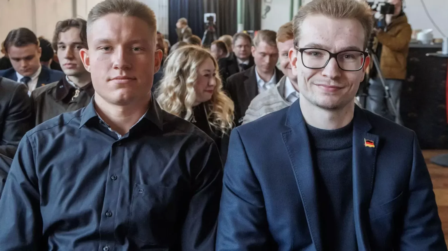 »Generation Deutschland«-Delegierte mit Thüringer AfD-Landeschef Höcke in Gießen: Verbindungen zu Neonazis Foto: Rafael Heygster / DER SPIEGEL