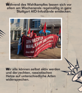 Außerdem hat das Bündnis kürzlich verschiedene Ideen und Anregungen zusammengestellt, wie ihr selbst im Wahlkampf gegen Rechts aktiv werden könnt. Zum Beitrag kommt ihr hier.