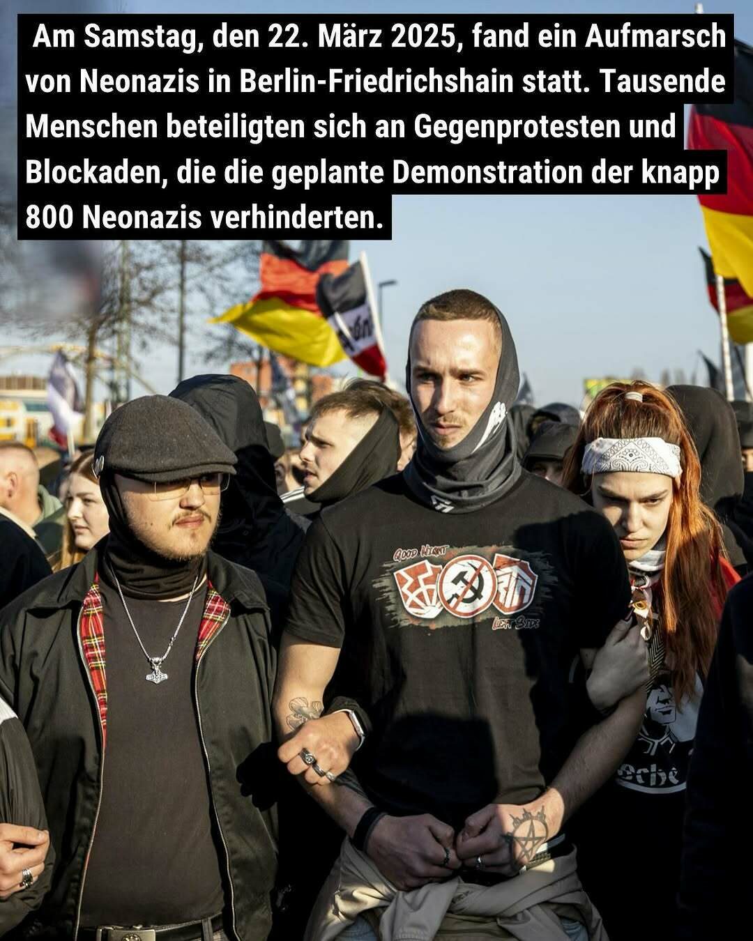 Am Samstag, den 22. März 2025, fand ein Aufmarsch von Neonazis in Berlin-Friedrichshain statt. Tausende Menschen beteiligten sich an Gegenprotesten und Blockaden, die die geplante Demonstration der knapp 800 Neonazis verhinderten.