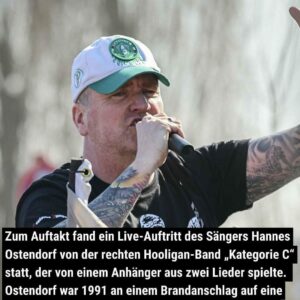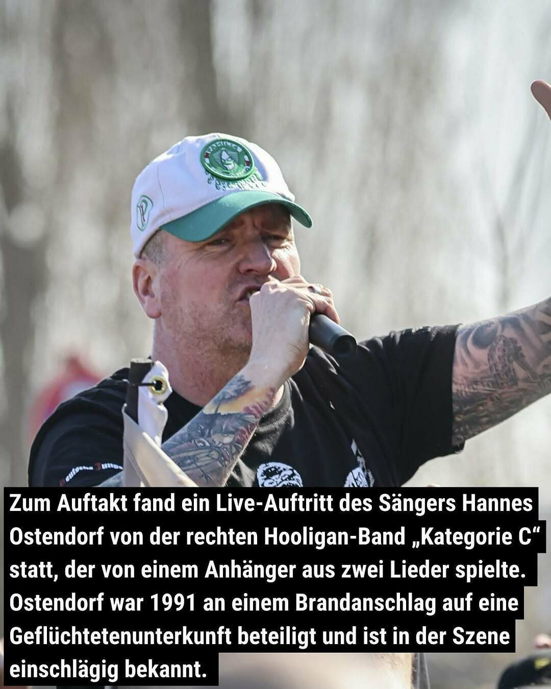 Zum Auftakt fand ein Live-Auftritt des Sängers Hannes Ostendorf von der rechten Hooligan-Band „Kategorie-C“ statt, der von einem Anhänger aus zwei Lieder spielte.